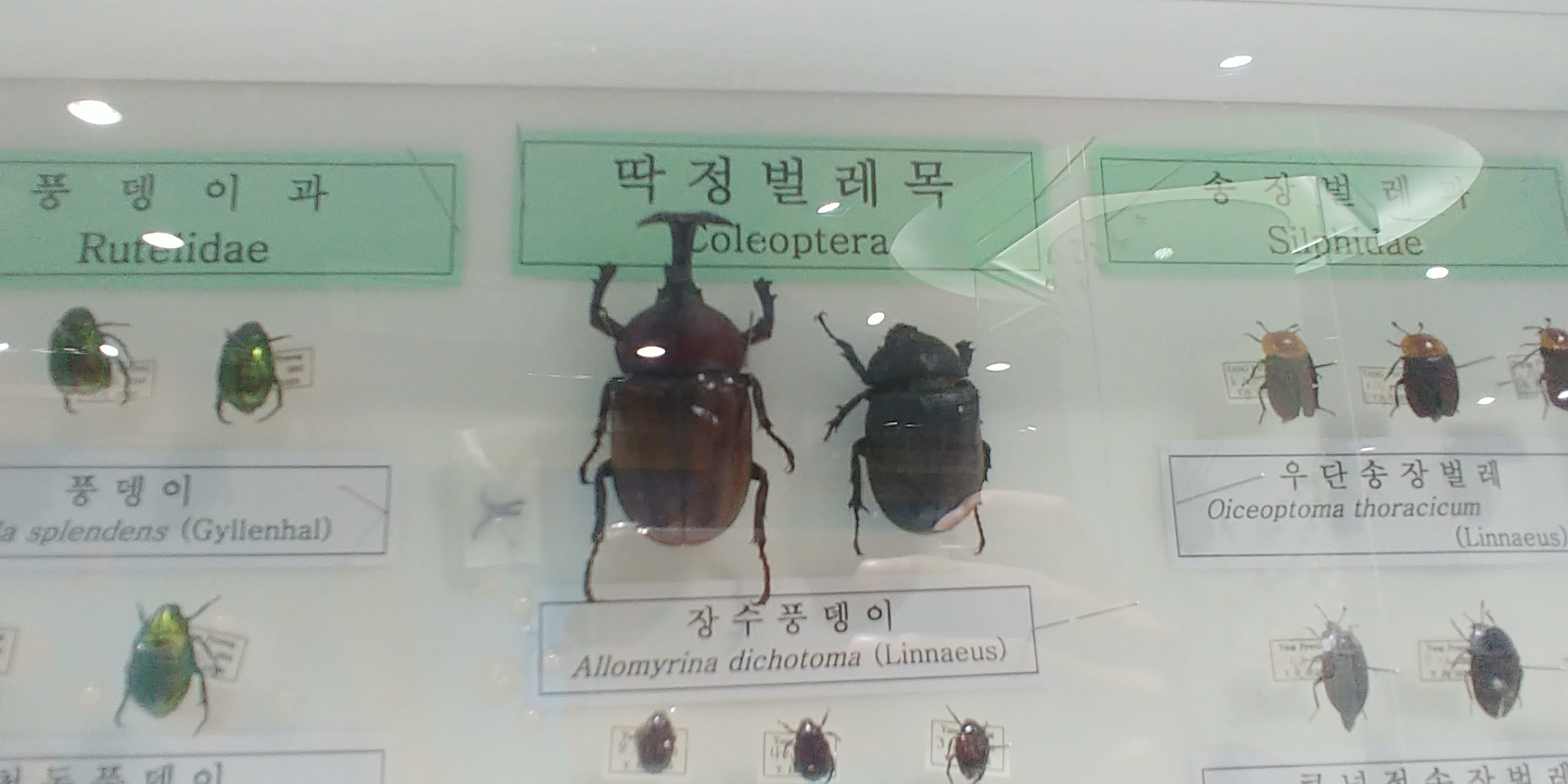 풍뎅이과 딱정벌레 송장벌레등 평소에 보기힘든 곤충들 표본이 전시되있어요.