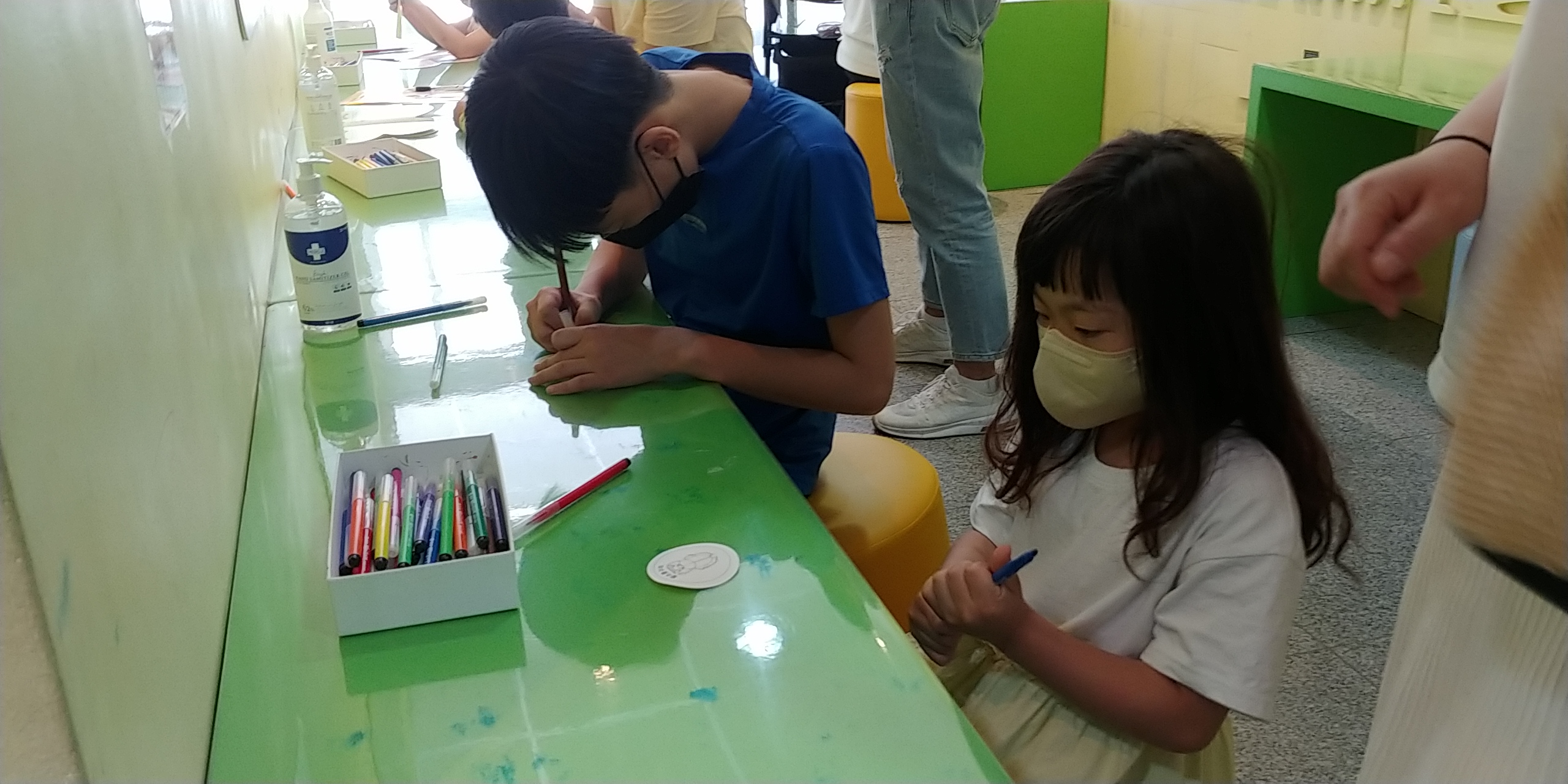 이 종이스티커를 색칠해서 나중에 나갈때 안내데스크에서 내면