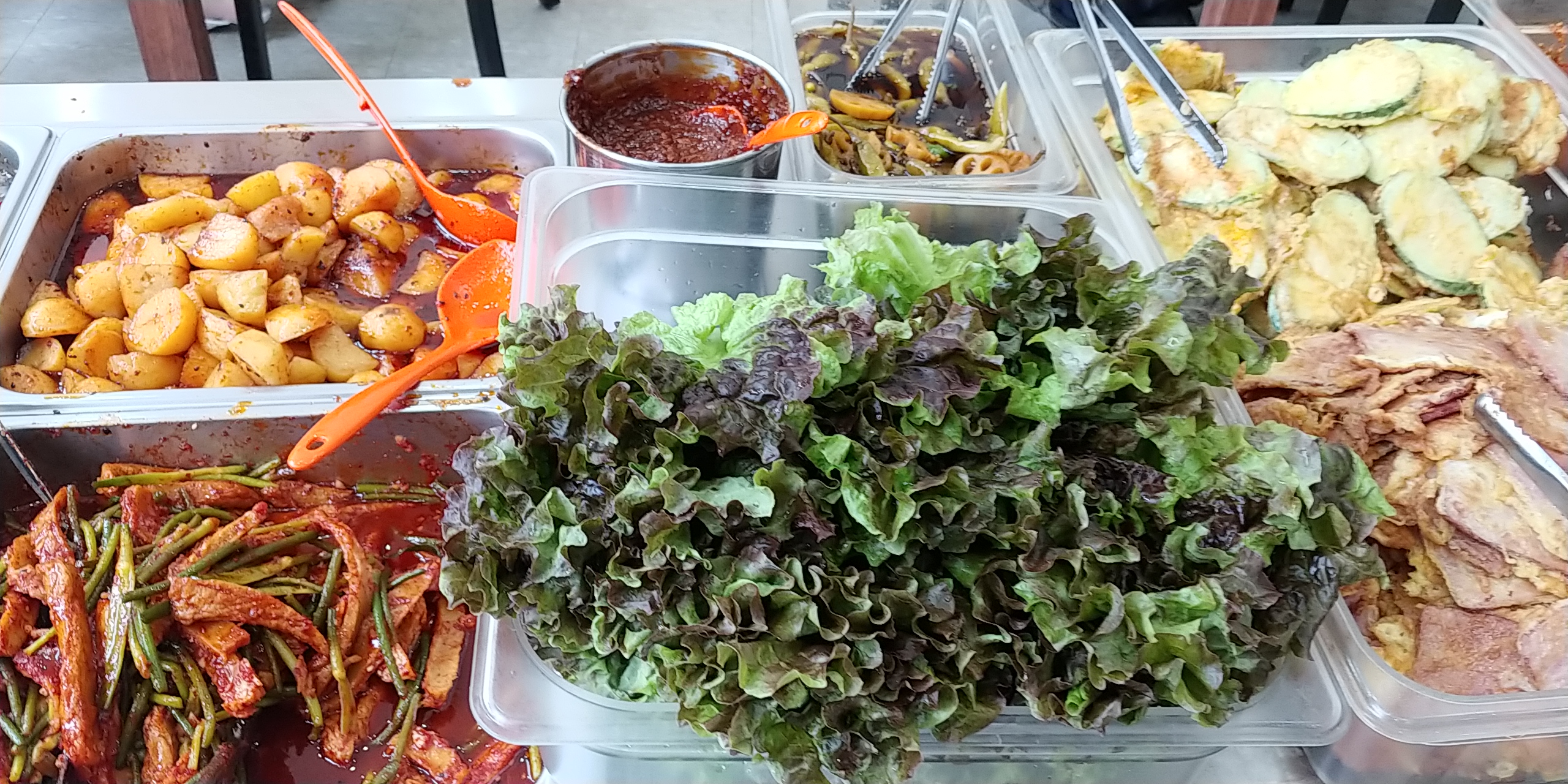 상추 밑으로 음식 많이 가려서 잘 안보이는군요.