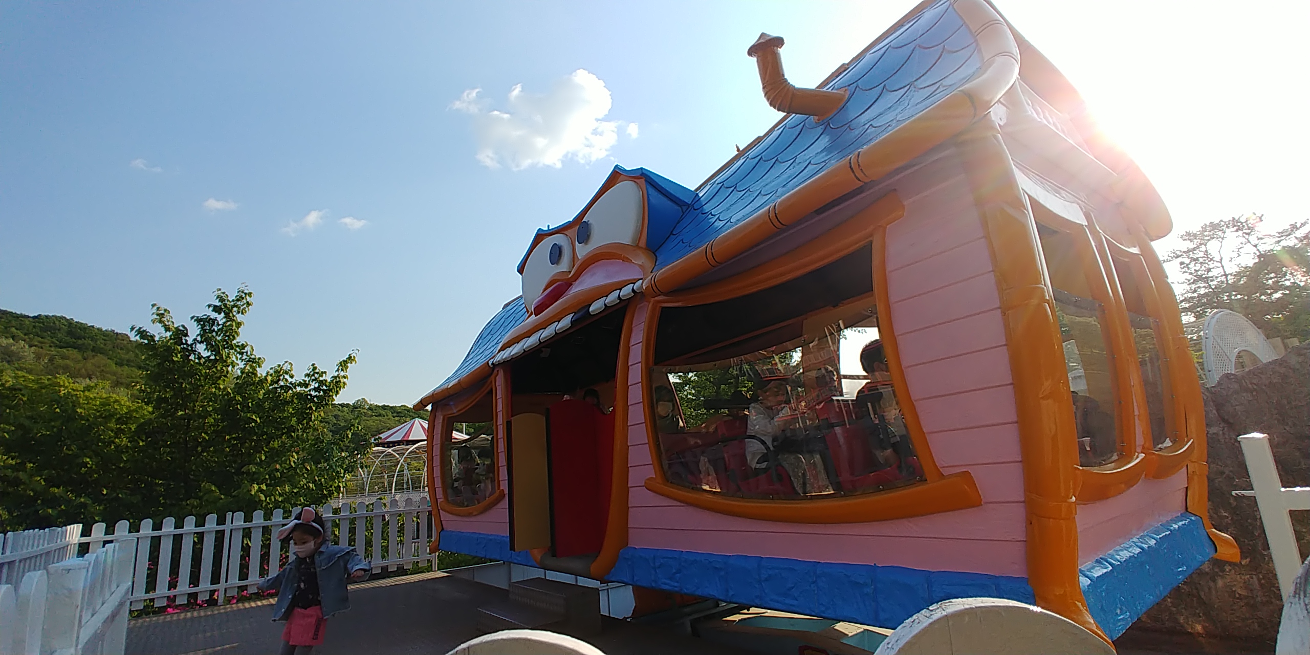 머리위로 기차놀이기구가 지나가는데 나이어린친구는 못타고
