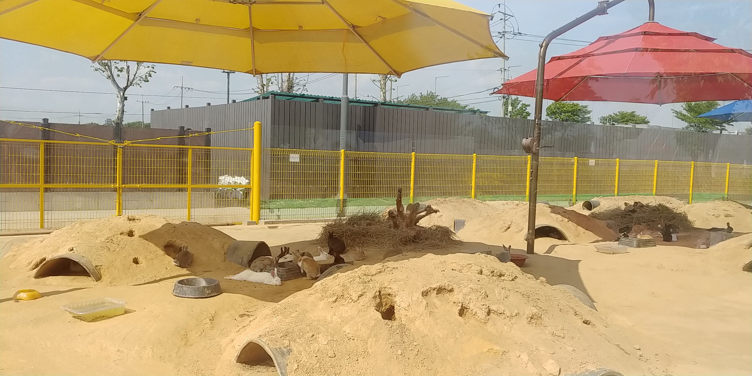 정면쪽으로는 토끼 사육장이 크게 조성되어있는데 먹이체험을 할수있는곳이라