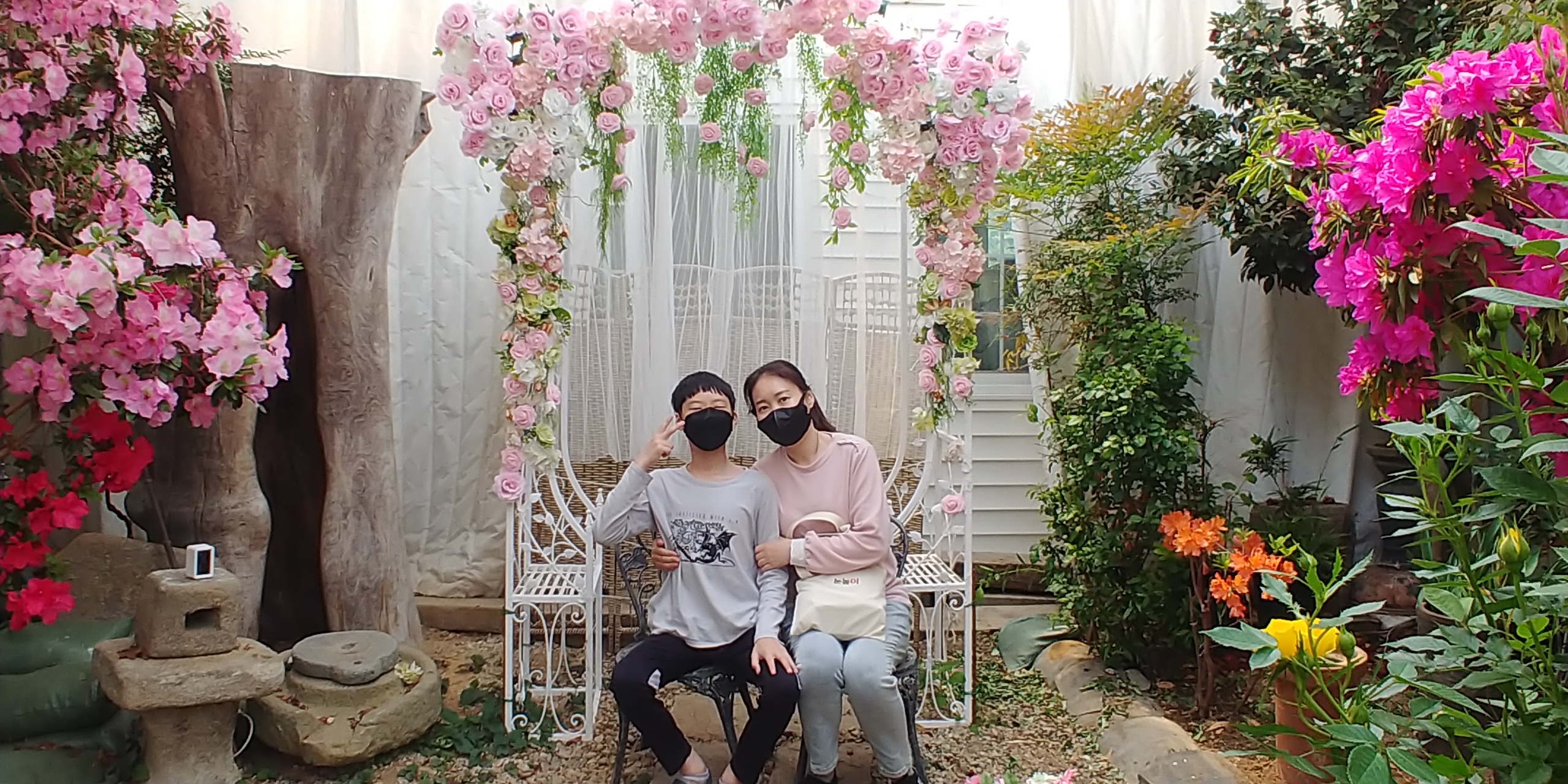 그래서 정원 한가운데 산쪽으로 직접 살고있는 가정집이 위치해있고