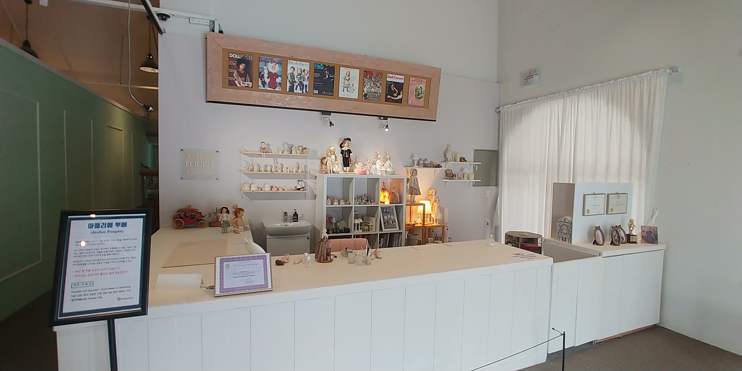 아뜰리에 뿌뻬는 도자기인형작가의 작업과정을 관람객이 눈으로 직접 볼수있게 조성된공간이다.