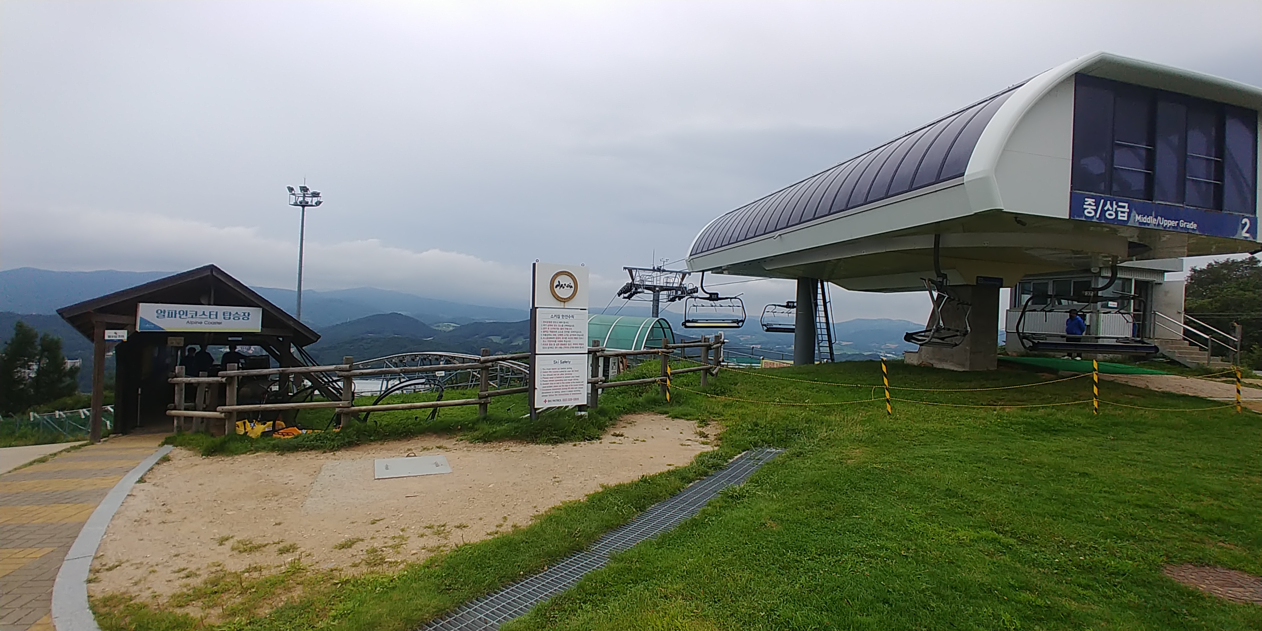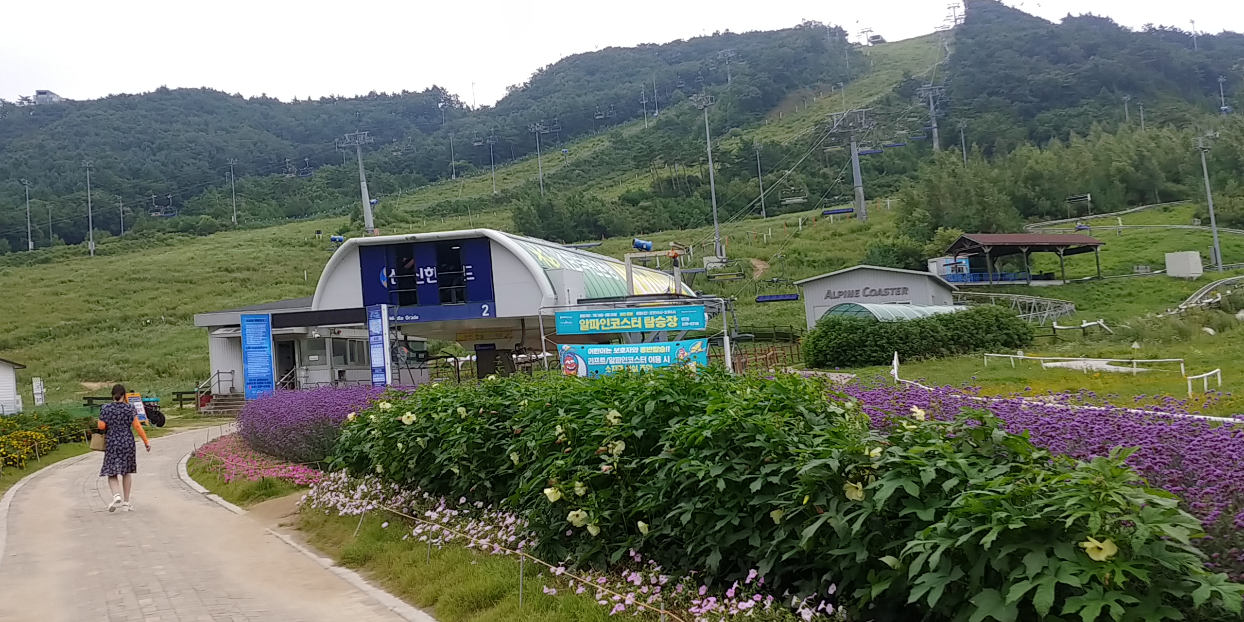 강원도 평창 가볼만한곳 알펜시아리조트 리프트케이블카 정상입니다.