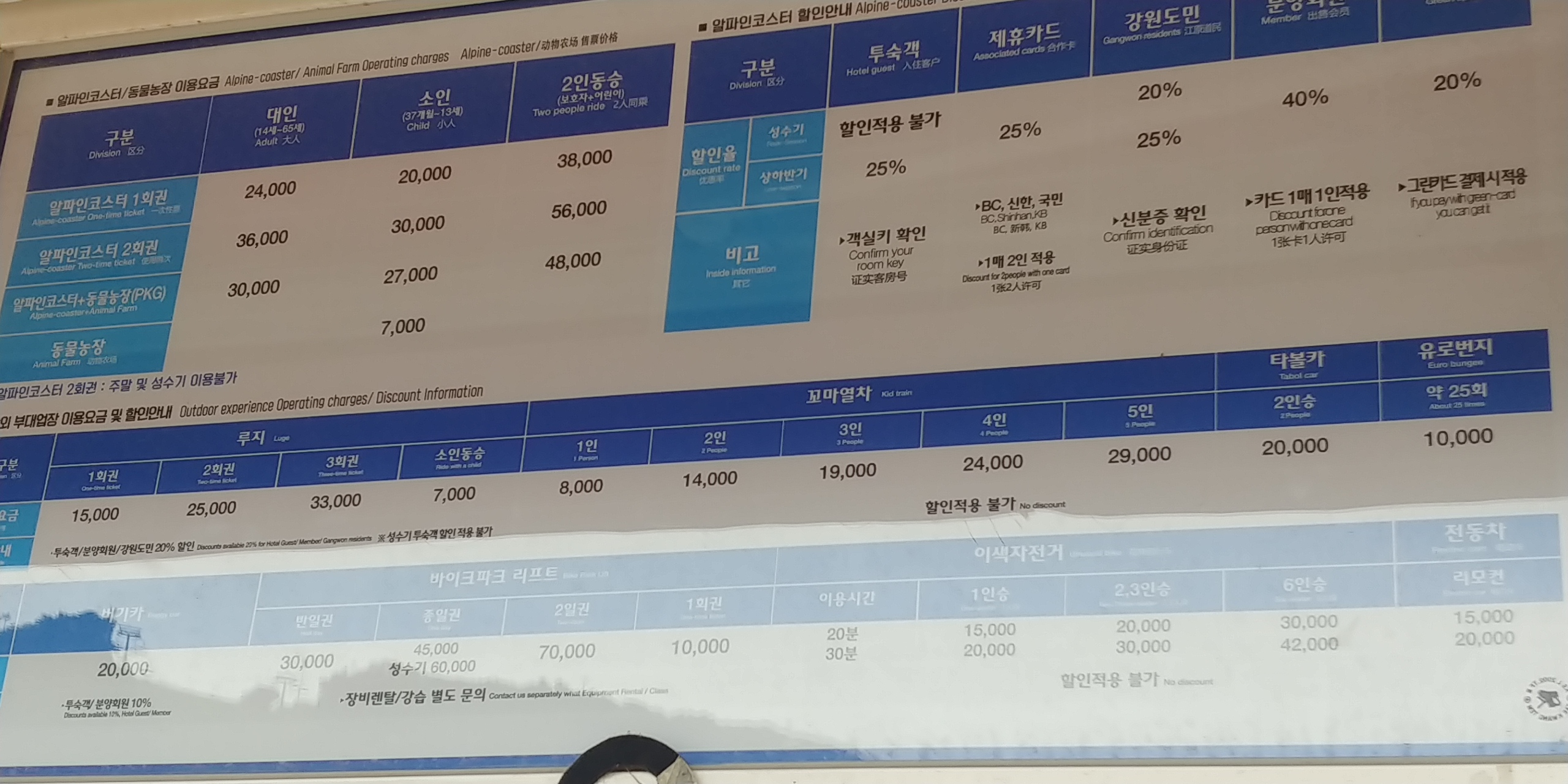 나머지도 제휴카드할인 강원도민할인 등등 있습니다.