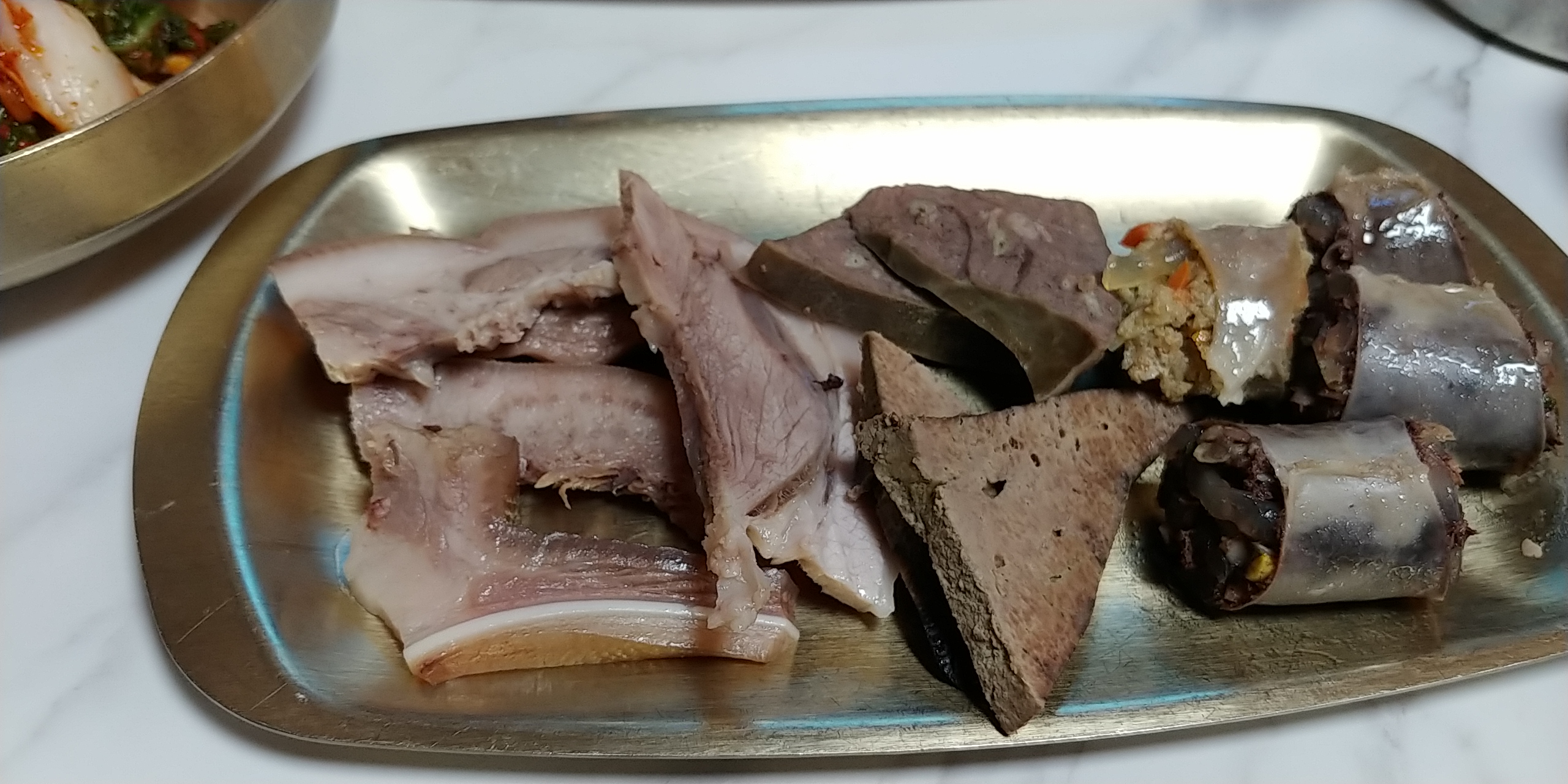 특별한거 없고 정식으로 주문하면 간,허파,순대,머릿고기가 조금 한접시에 나오는거 하나 입니다.