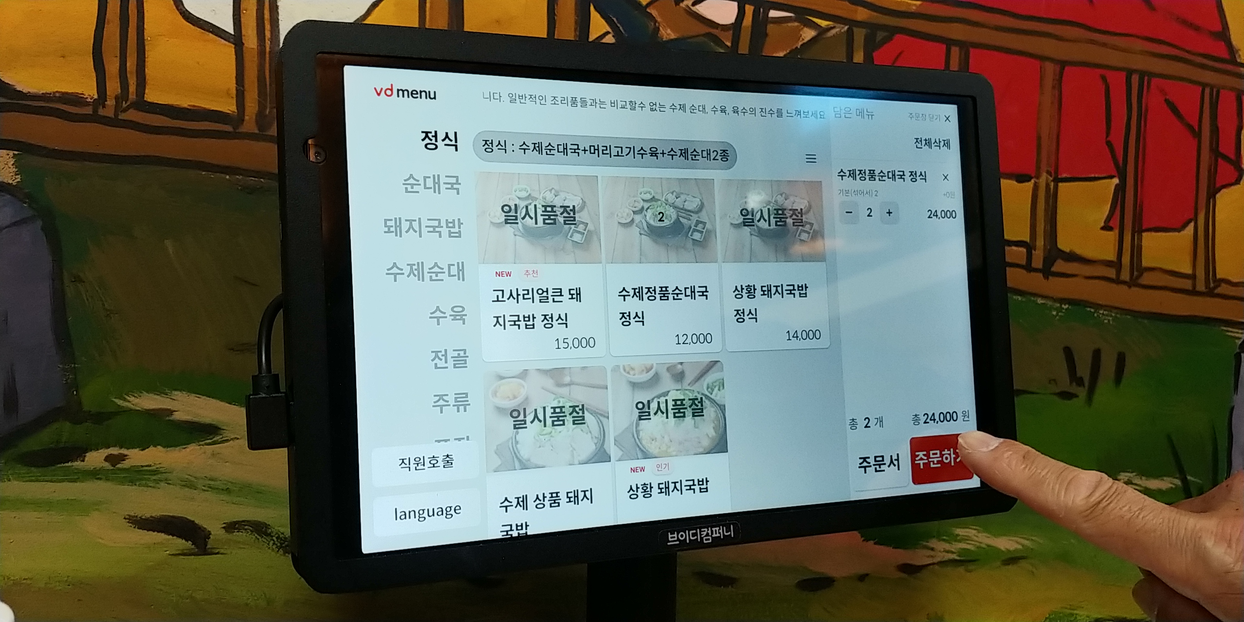 주문하기를 누르고 계산은 나갈때하면 됩니다.
