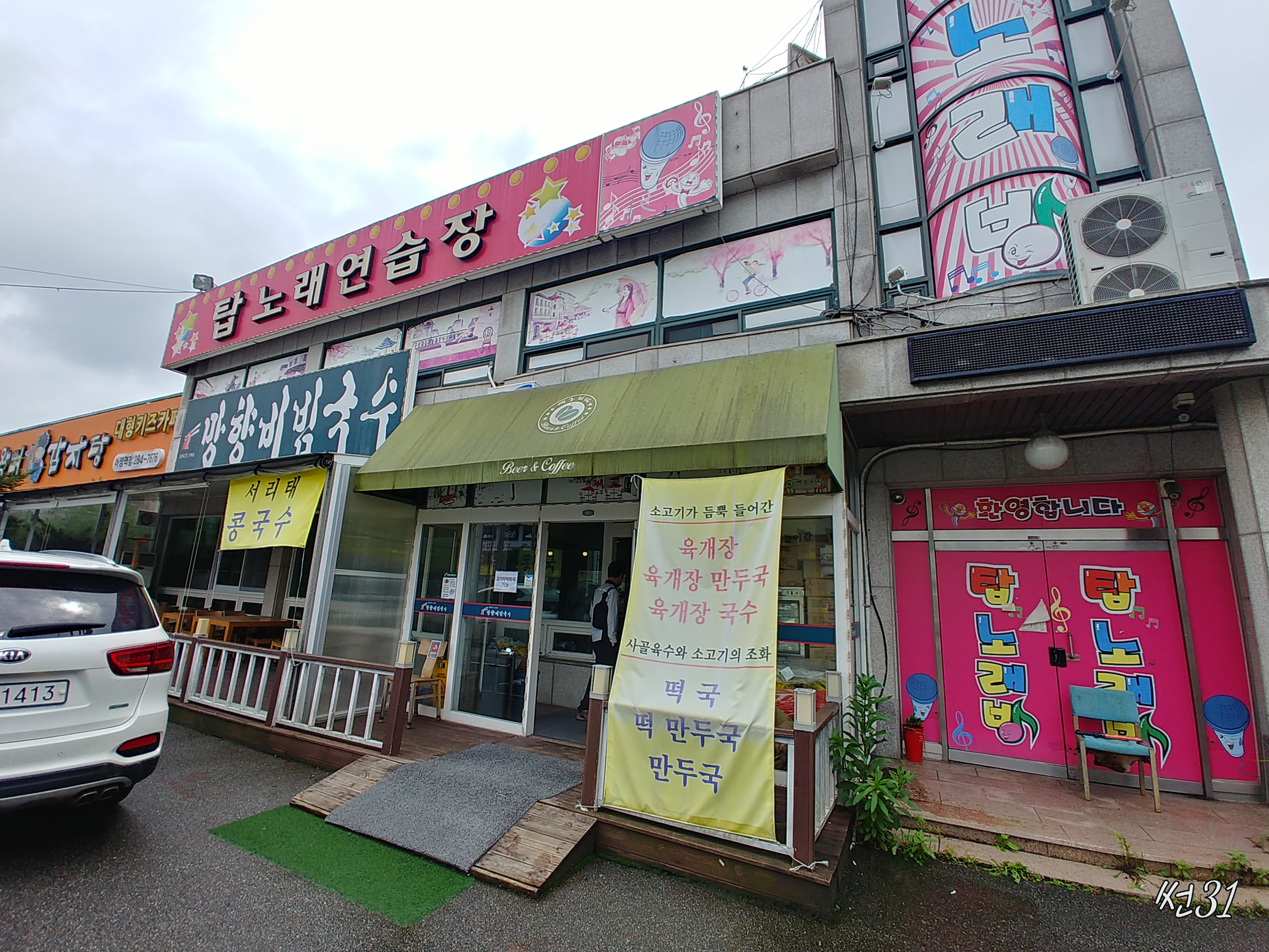처음 왔을때 주차장에 나왔는데 망향비빔국수 간판이 눈에 잘안들어오고 탑노래연습장이 눈에 너무 드러오고
