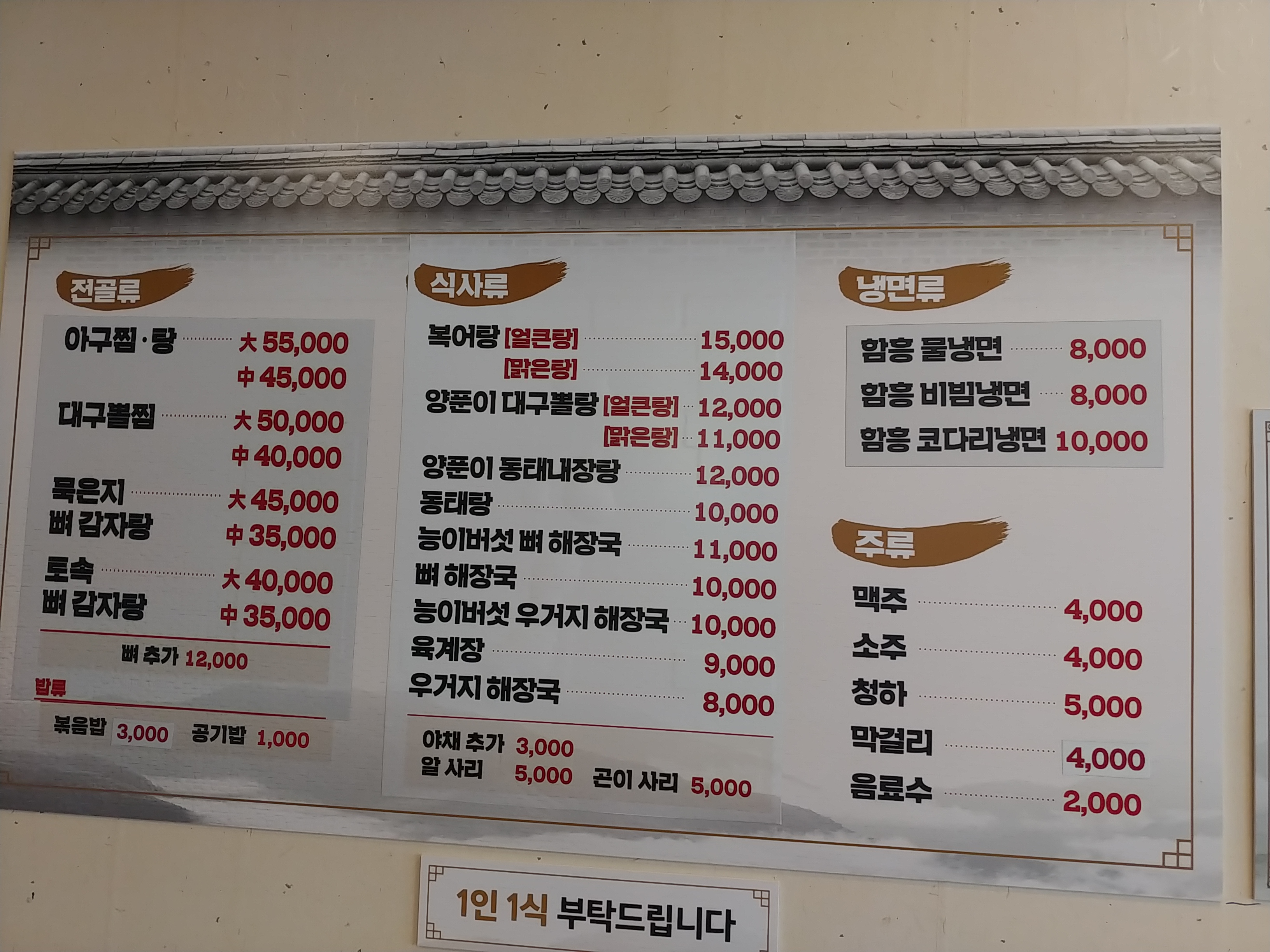 조금 싫어하는분들은 아주 싫어하는 1인1식을 부탁드린다는 말이있습니다.