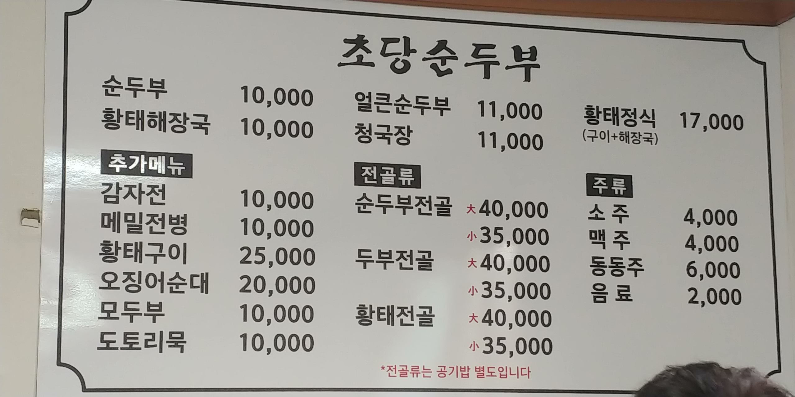 초당순두부 오셔서 만원~만천원정도에