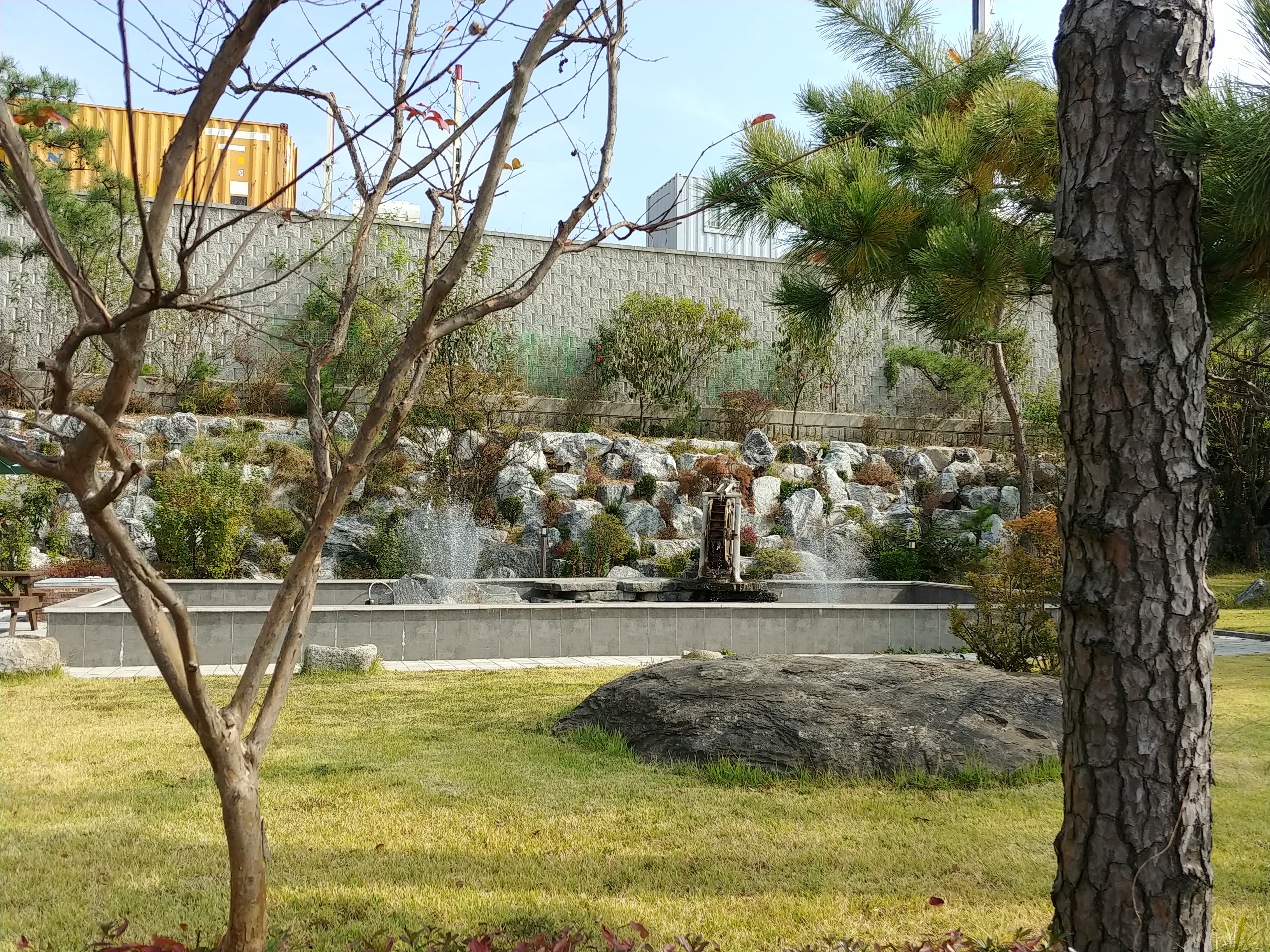 분수를 틀어놓아서 여름에는 더욱 시원함을 줄것이고 주변으로 유톡 소나무가 많이 심어져있다.