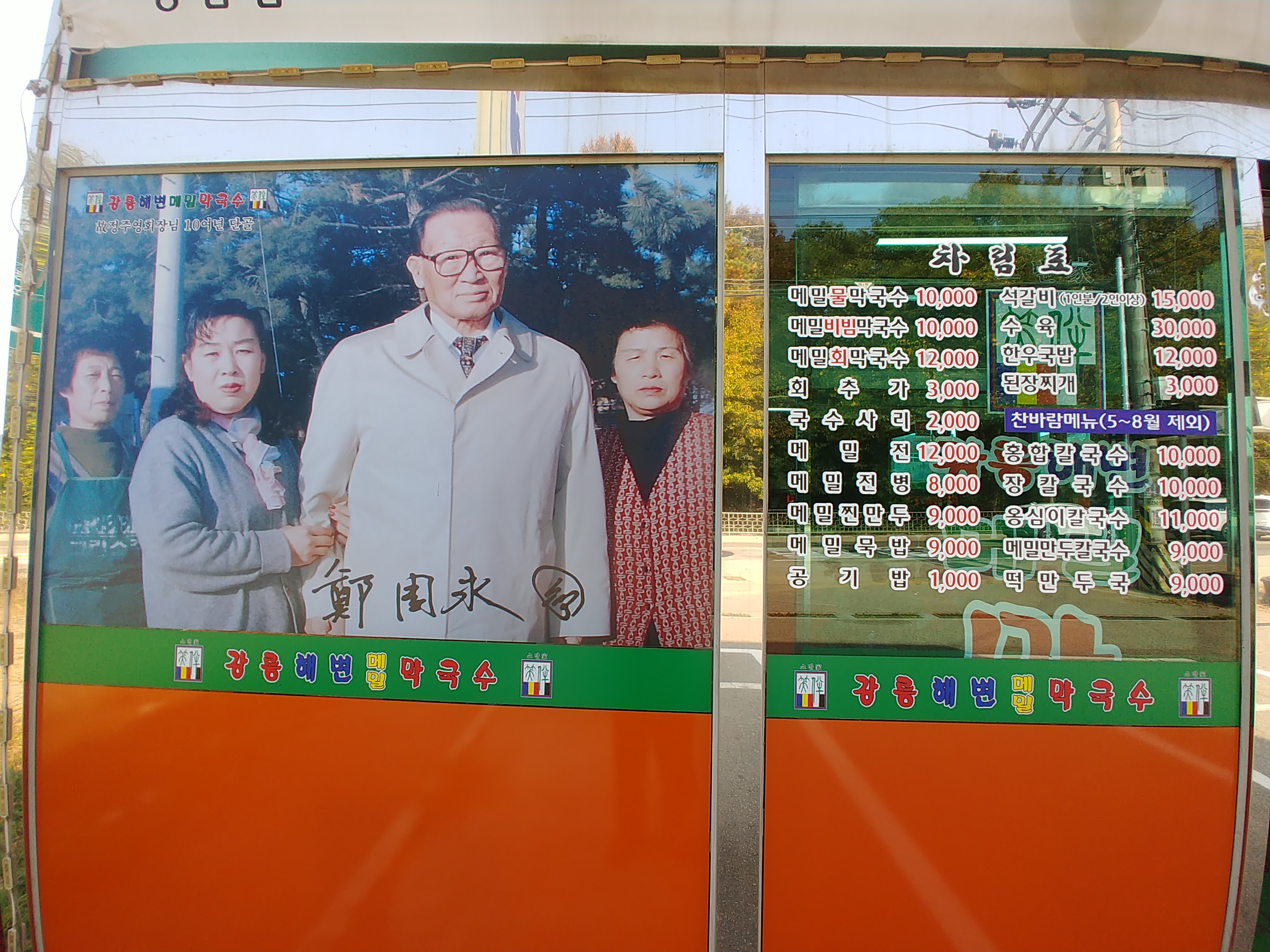 물론 정주영회장이 좋아했다는것도 메밀막국수인데 강릉해변메밀막국수집을 자주와서 먹고 갔다는건지 모르겠네요.