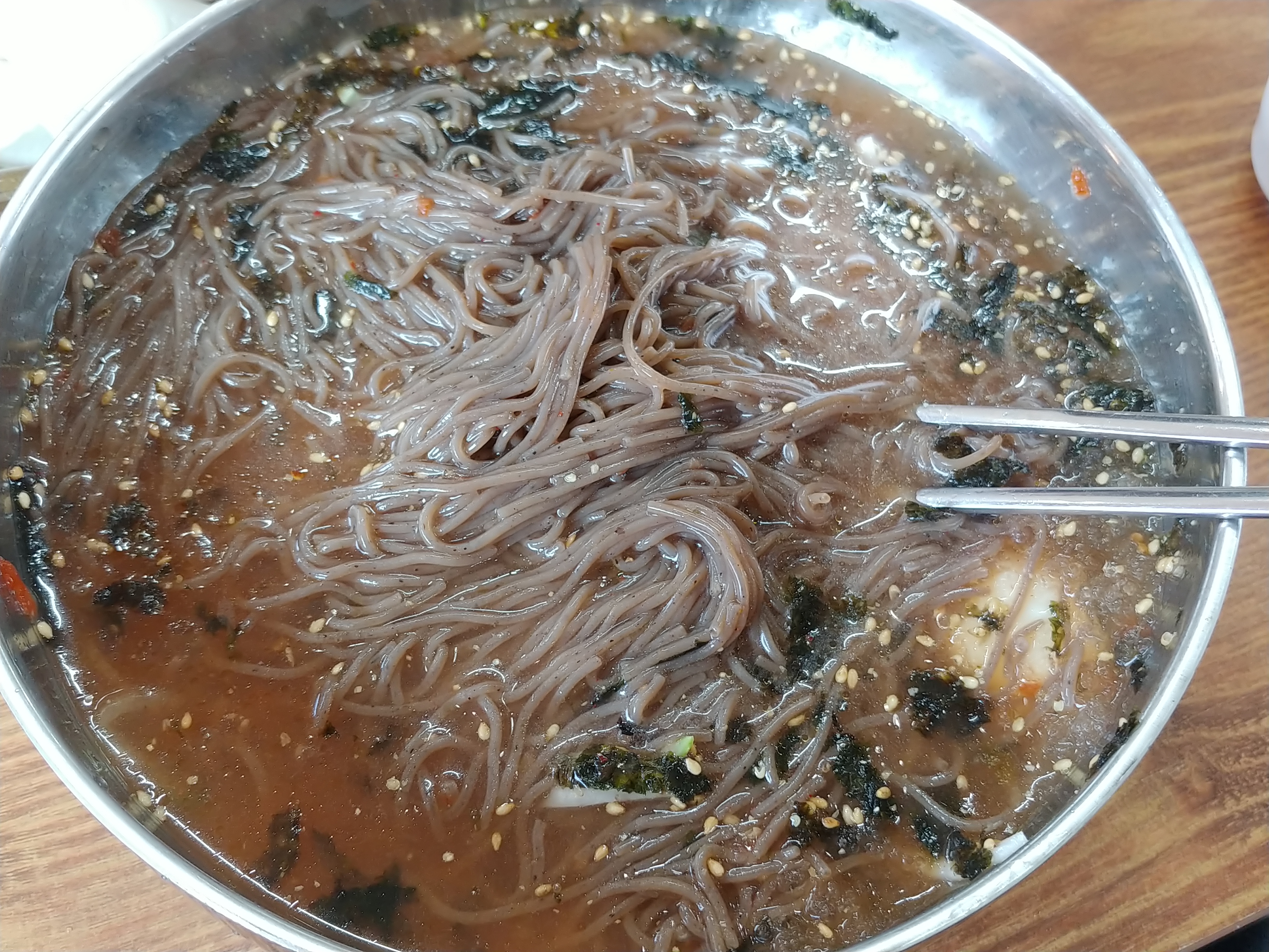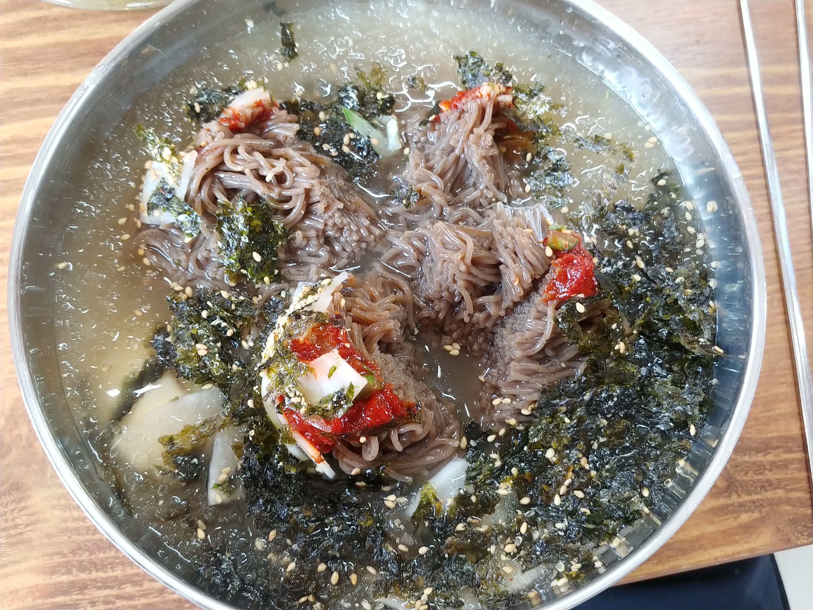 회마꾹수를 먹을까 고민하다가 일단 그냥 메밀막국수먹어보기로 했어요.