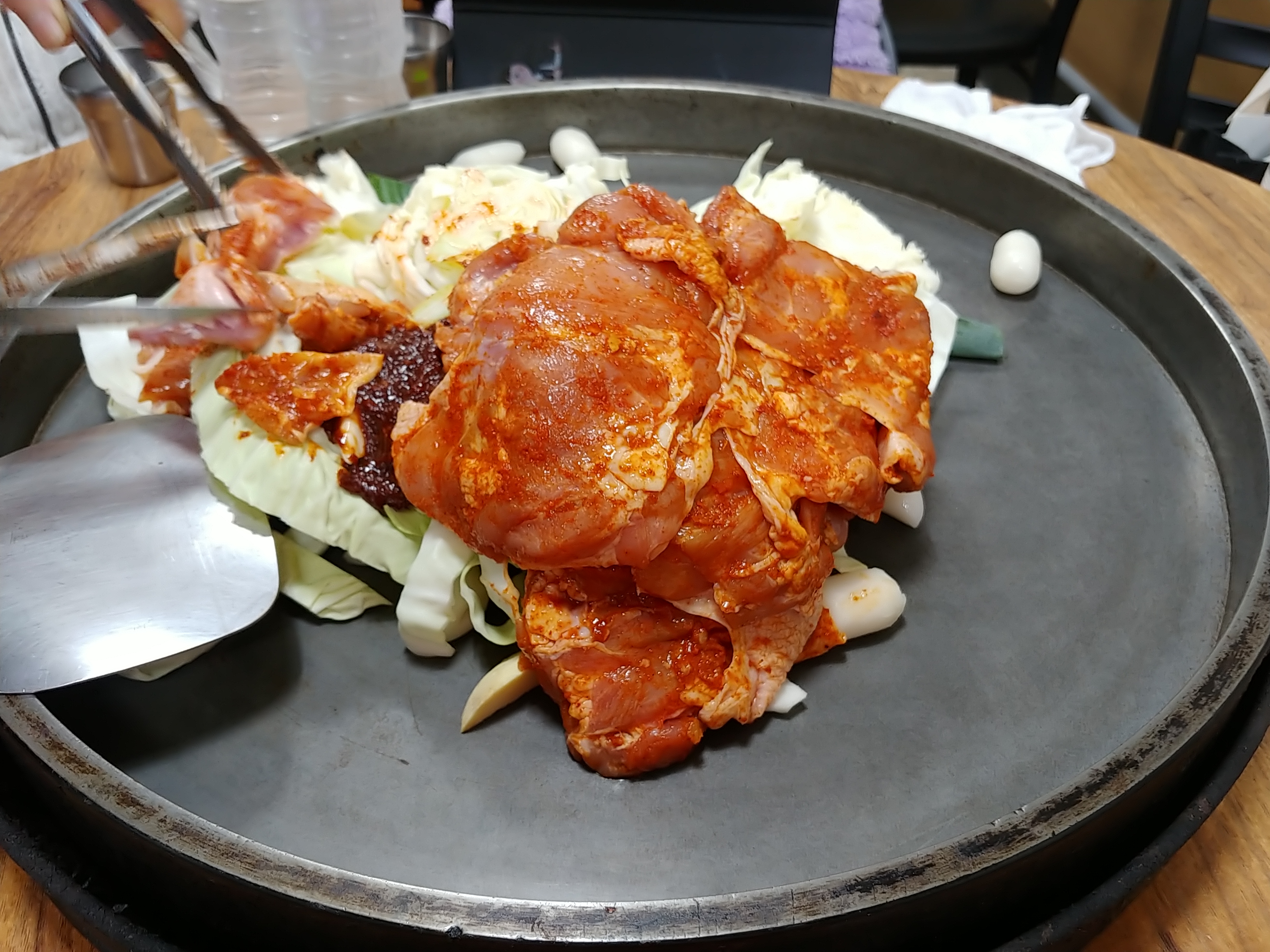 이전에 숫불로 먹는데서 닭갈비를 먹어보았는데