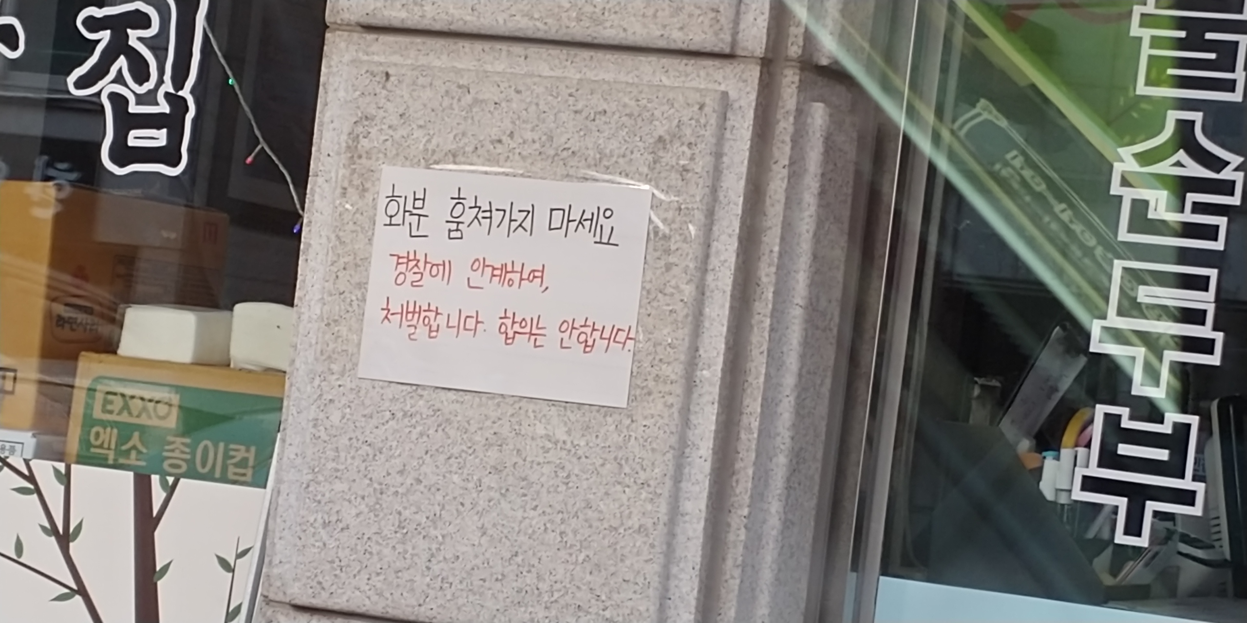 보니깐 화분이 보이지도 않는데 예전에 붙여놓은건지 모르겠는데 동네에서 화분을 얼마나 훔쳐가서 스트레스 받았는지..