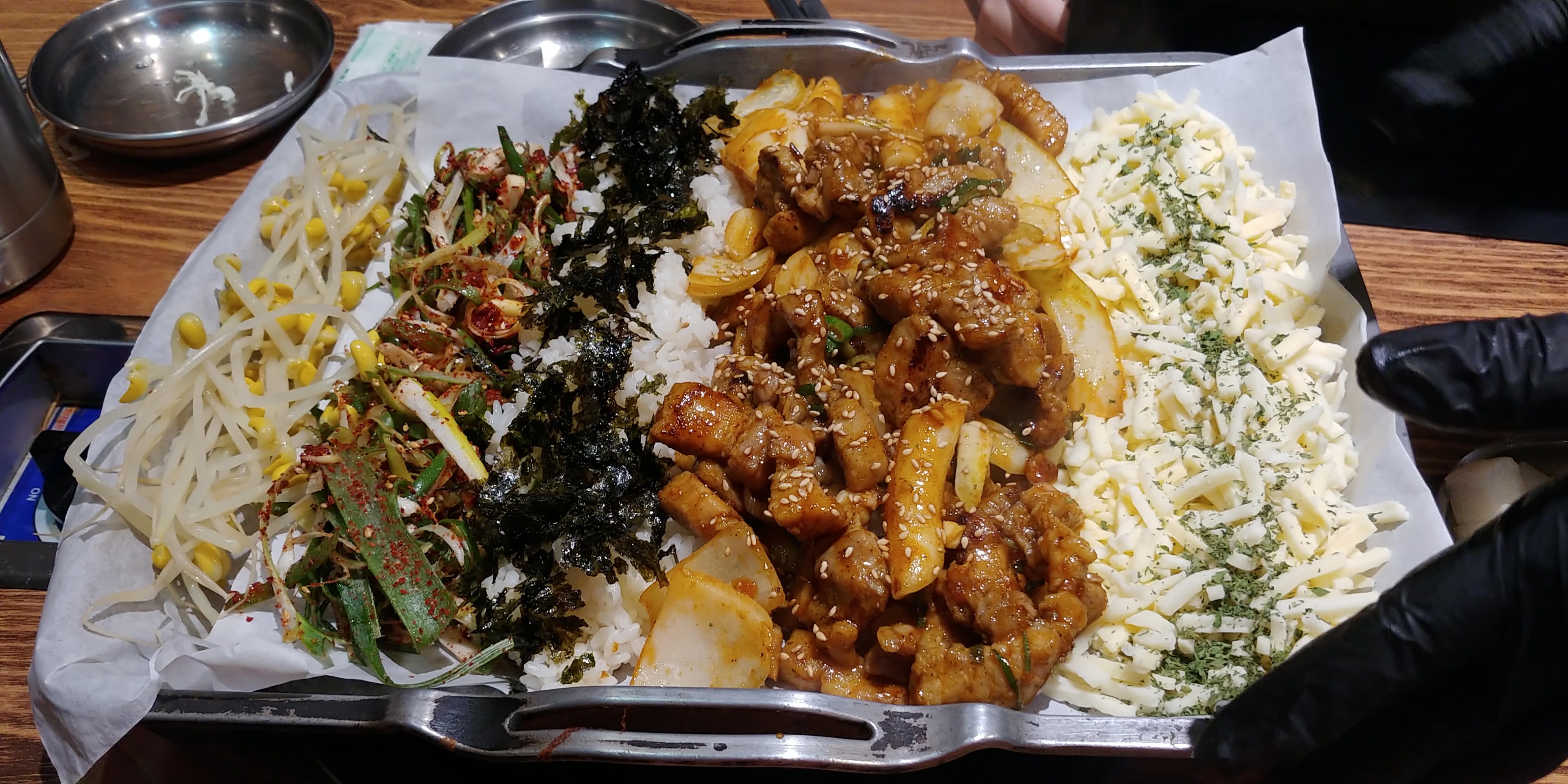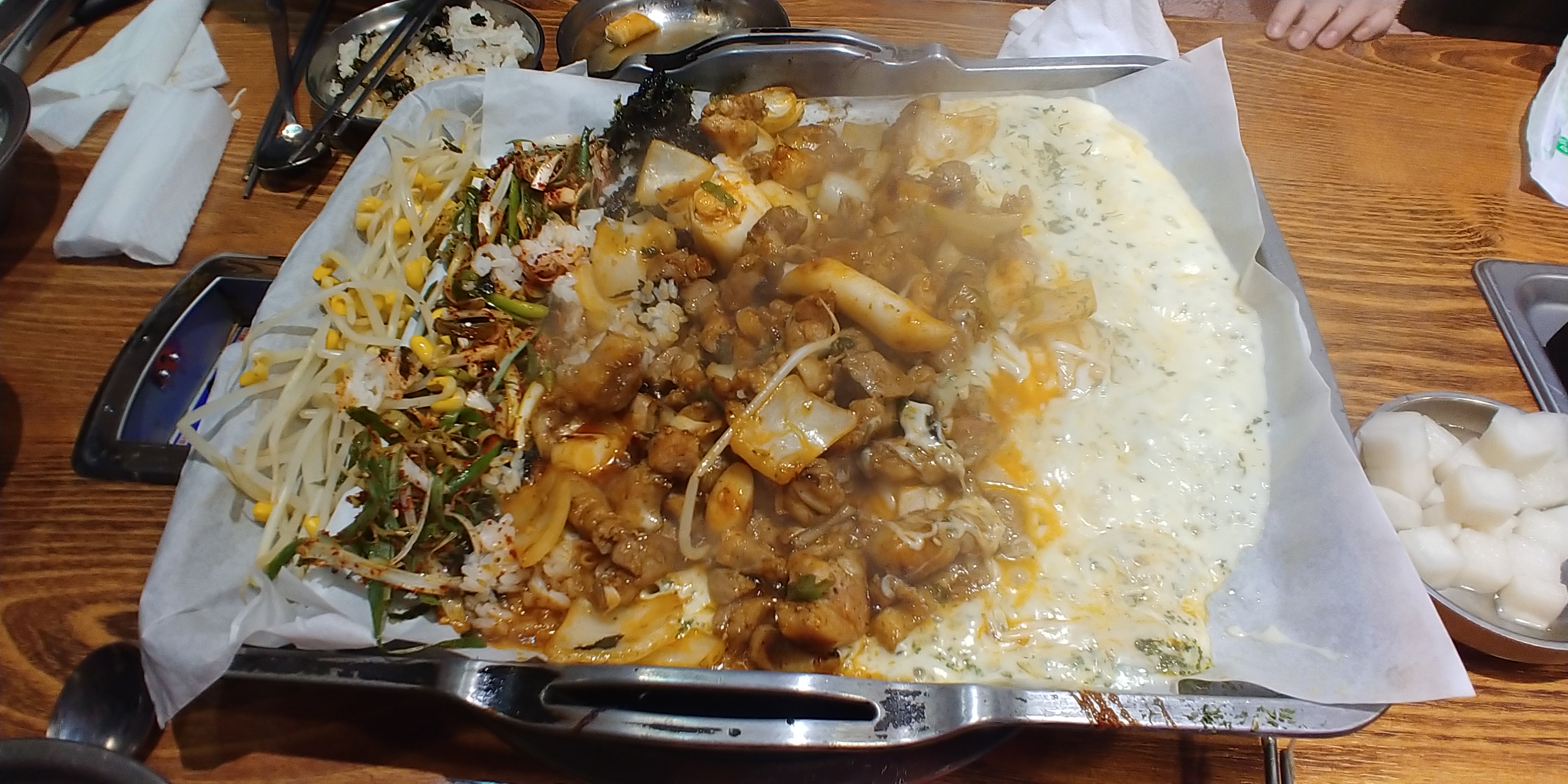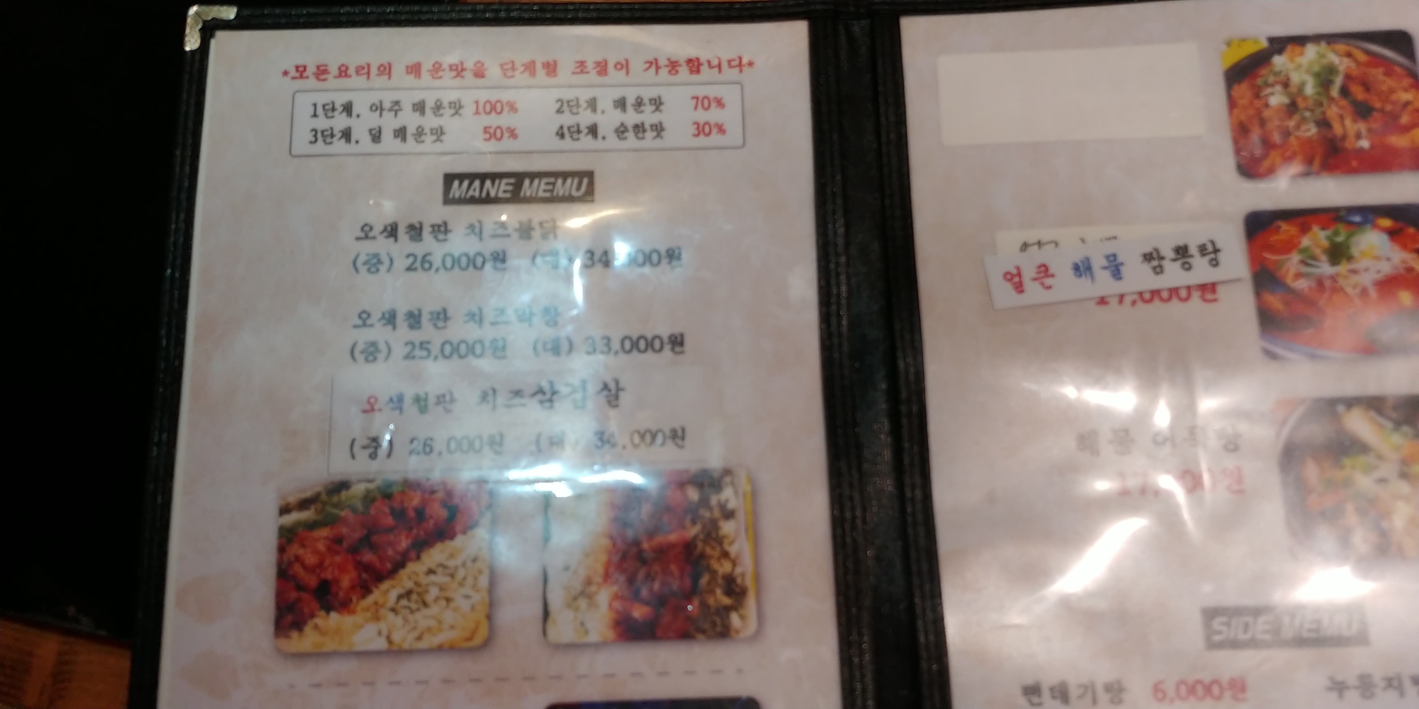 오색철판 치즈삼겹살을 주문했고요.