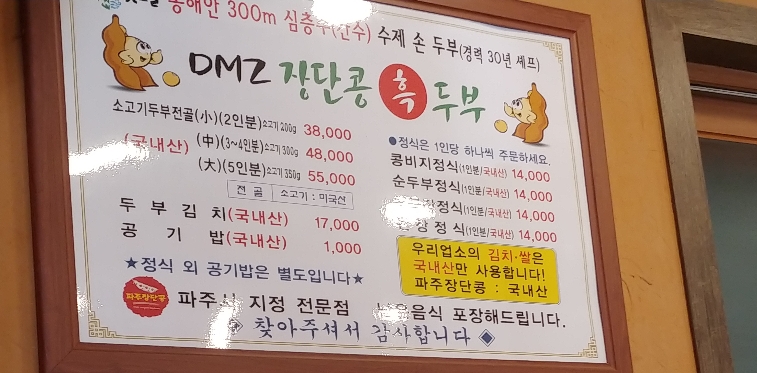 김치,쌀은 국내산만 사용하고 파주장단콩을 사용하는군요.