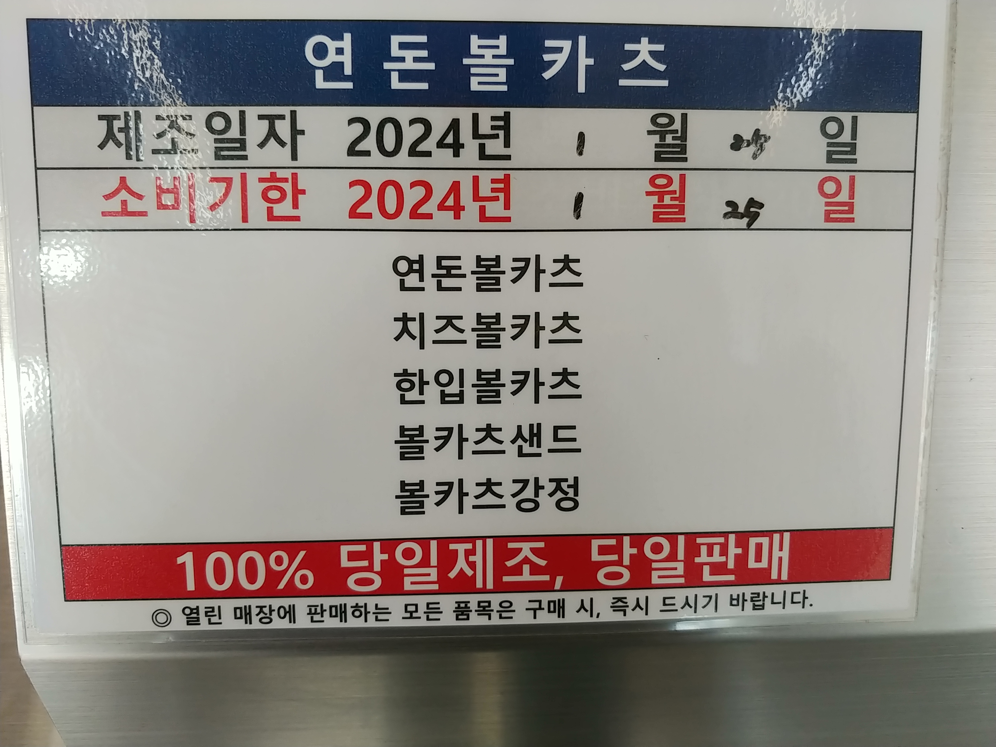 100프로 당일제조 당일판매라네요.