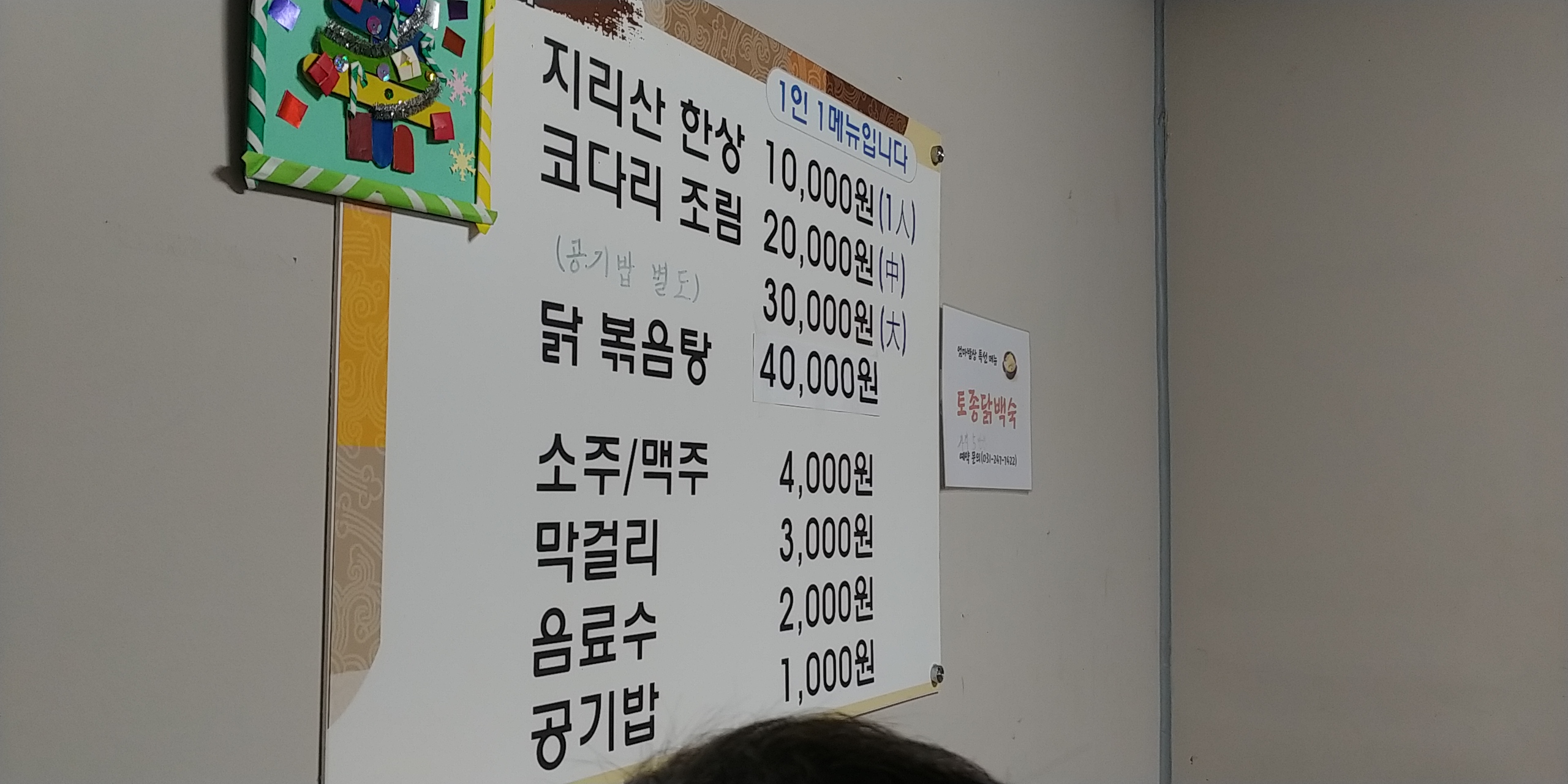 지리산한상, 코다리조림, 닭볶음탕 이렇게 3가지 메뉴이다.