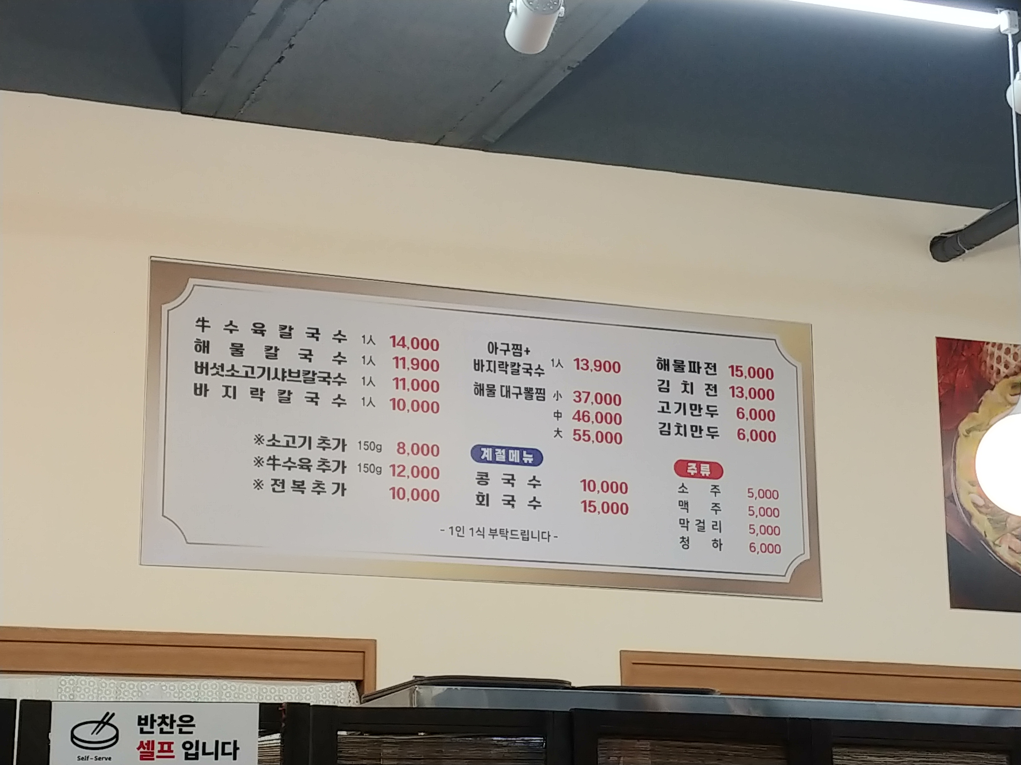 칼국수가격이 14000원은 처음본거같은데요.