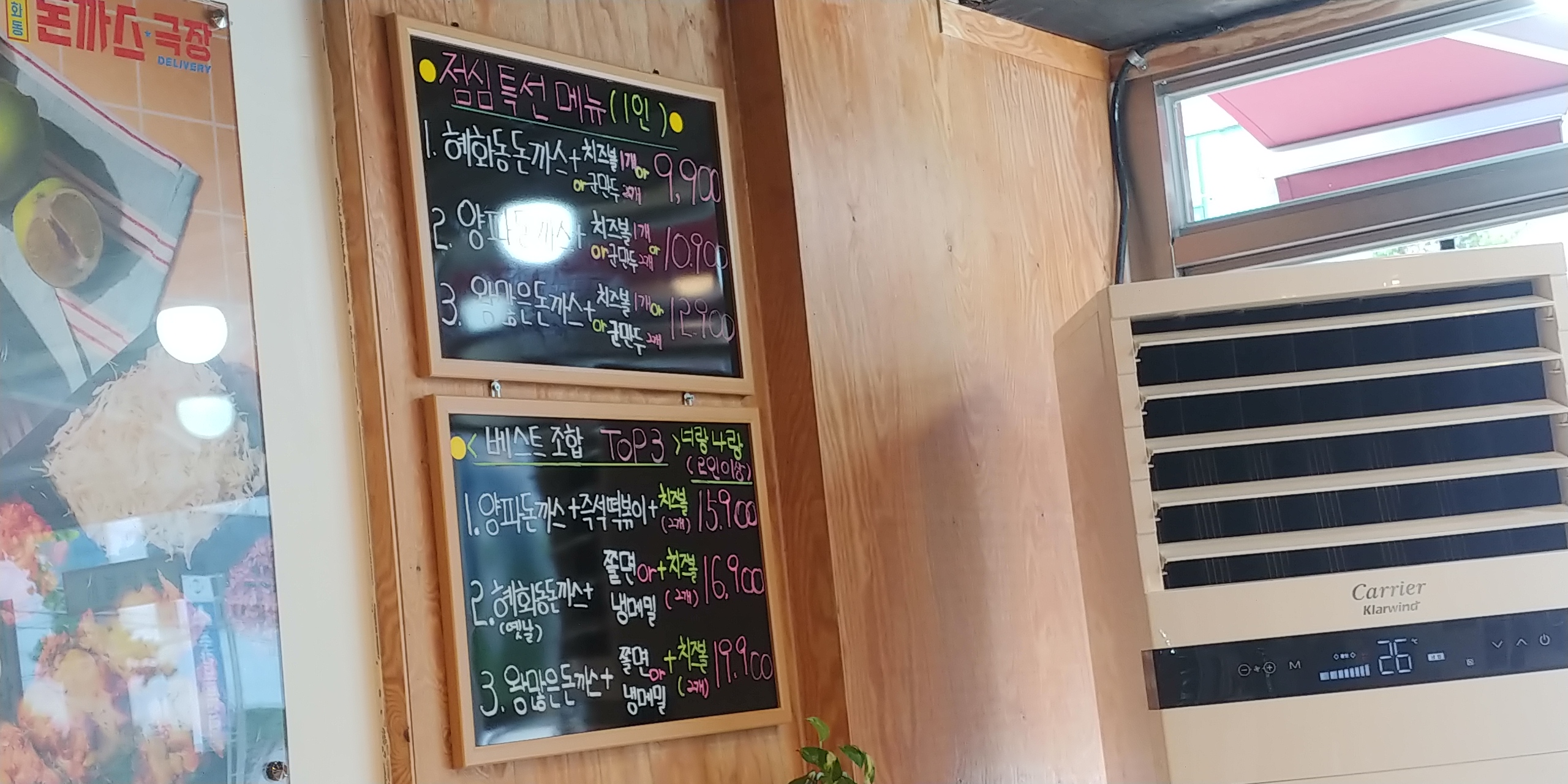 메뉴는 간단하다 혜화동돈까스가 기본적으로 나오는데 만원정도이다.