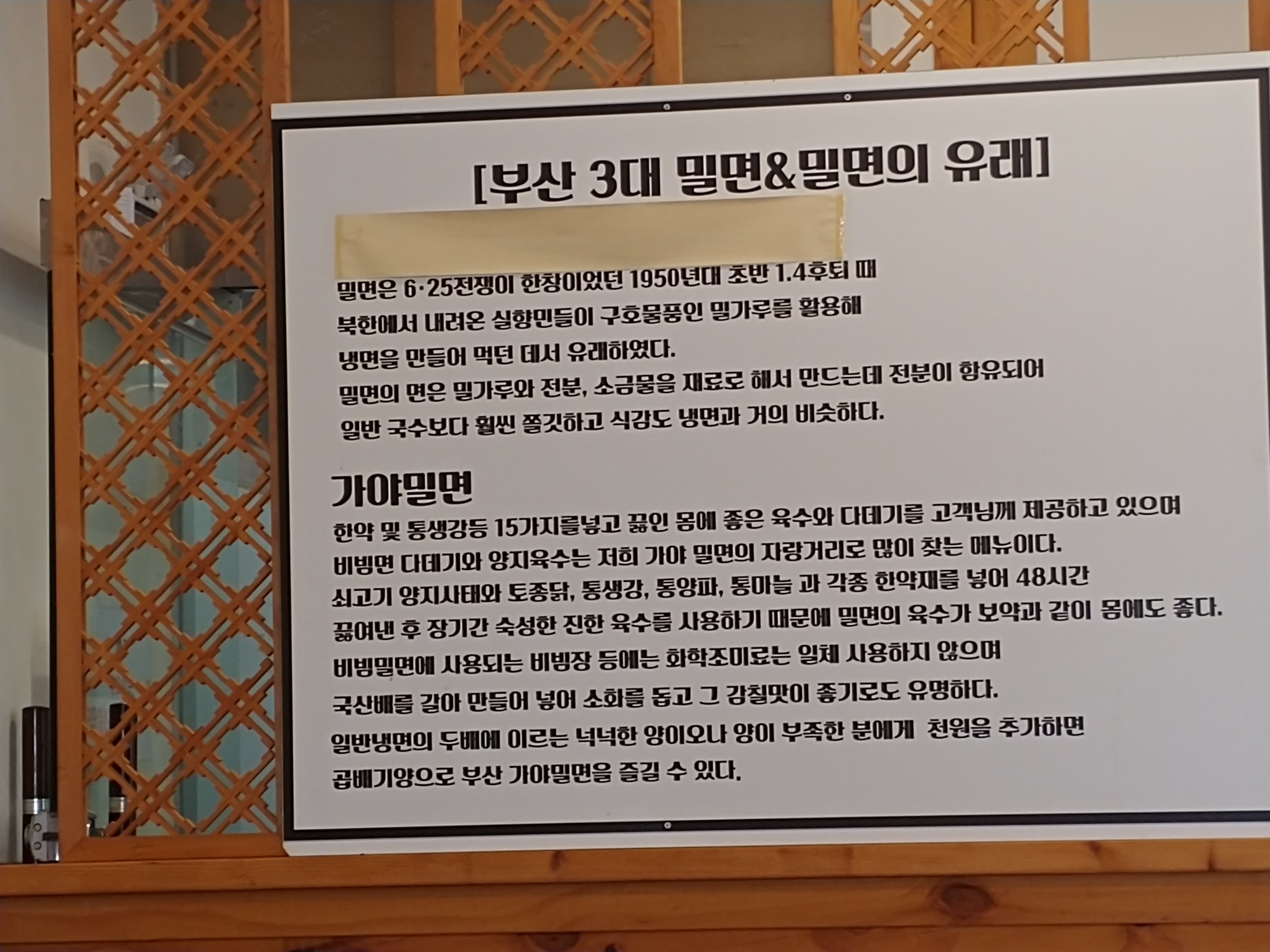밀면은 6.25때 북한에서 내려운 실향민들이 구호품인 밀가루를 이용해서 냉면을 만들어 먹은데서 유래되었다.