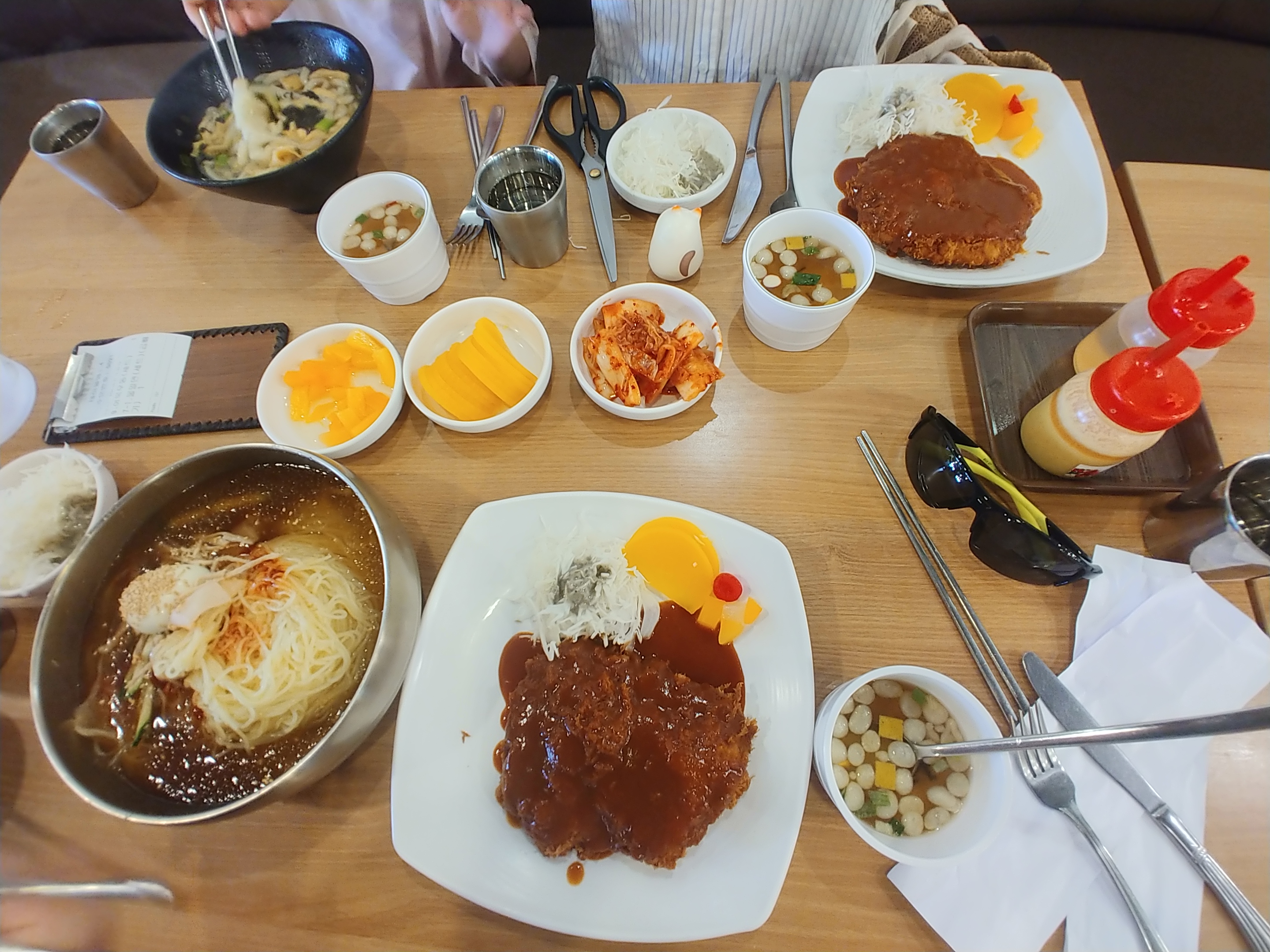 위에 사진에서 돈까스와 우동 밀면빼고는 다 내가 셀프로 세팅한것이다.
