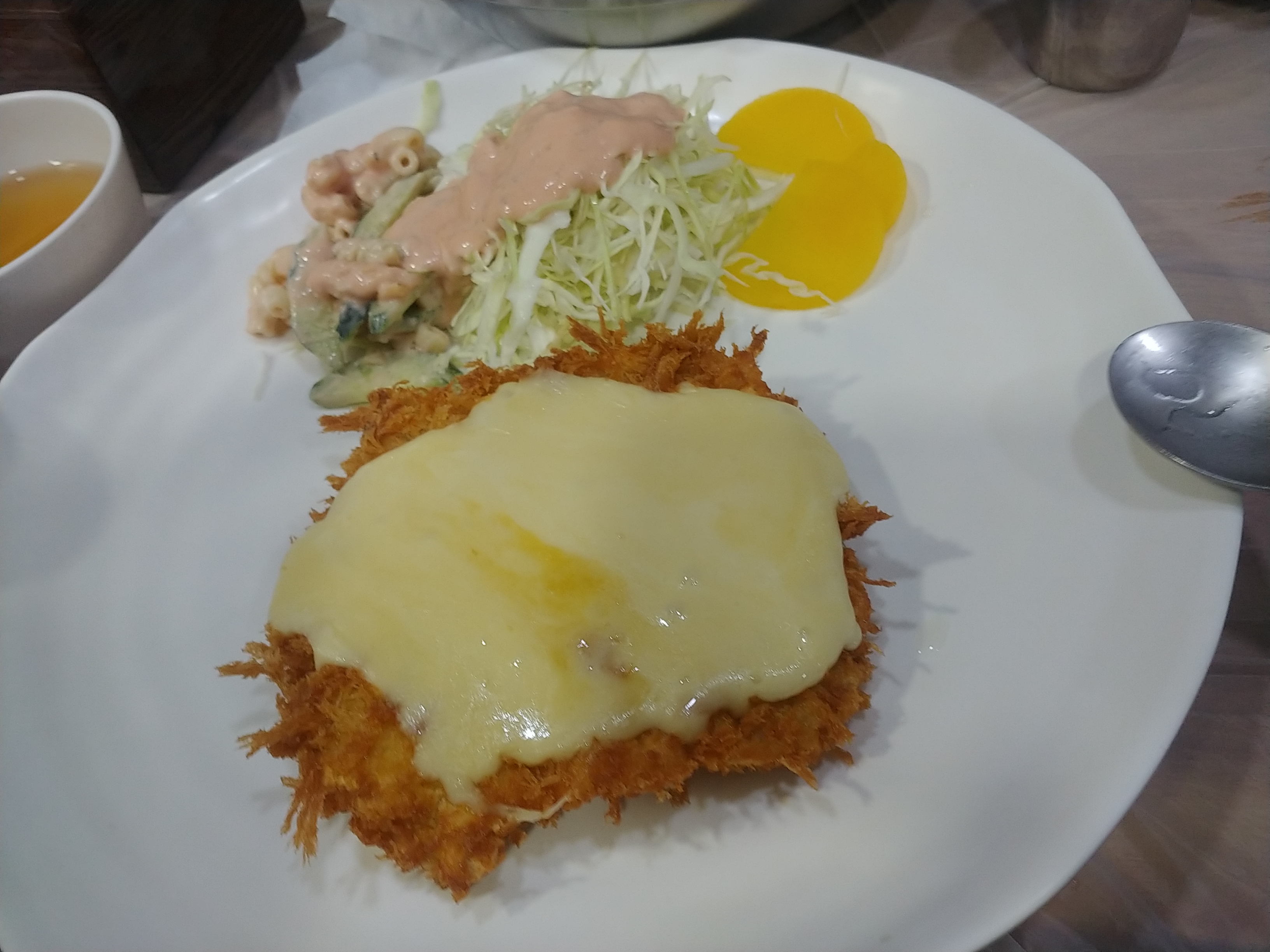 치즈돈까스는 날것 그느낌 그대로 치즈가 딱 올라가있습니다.