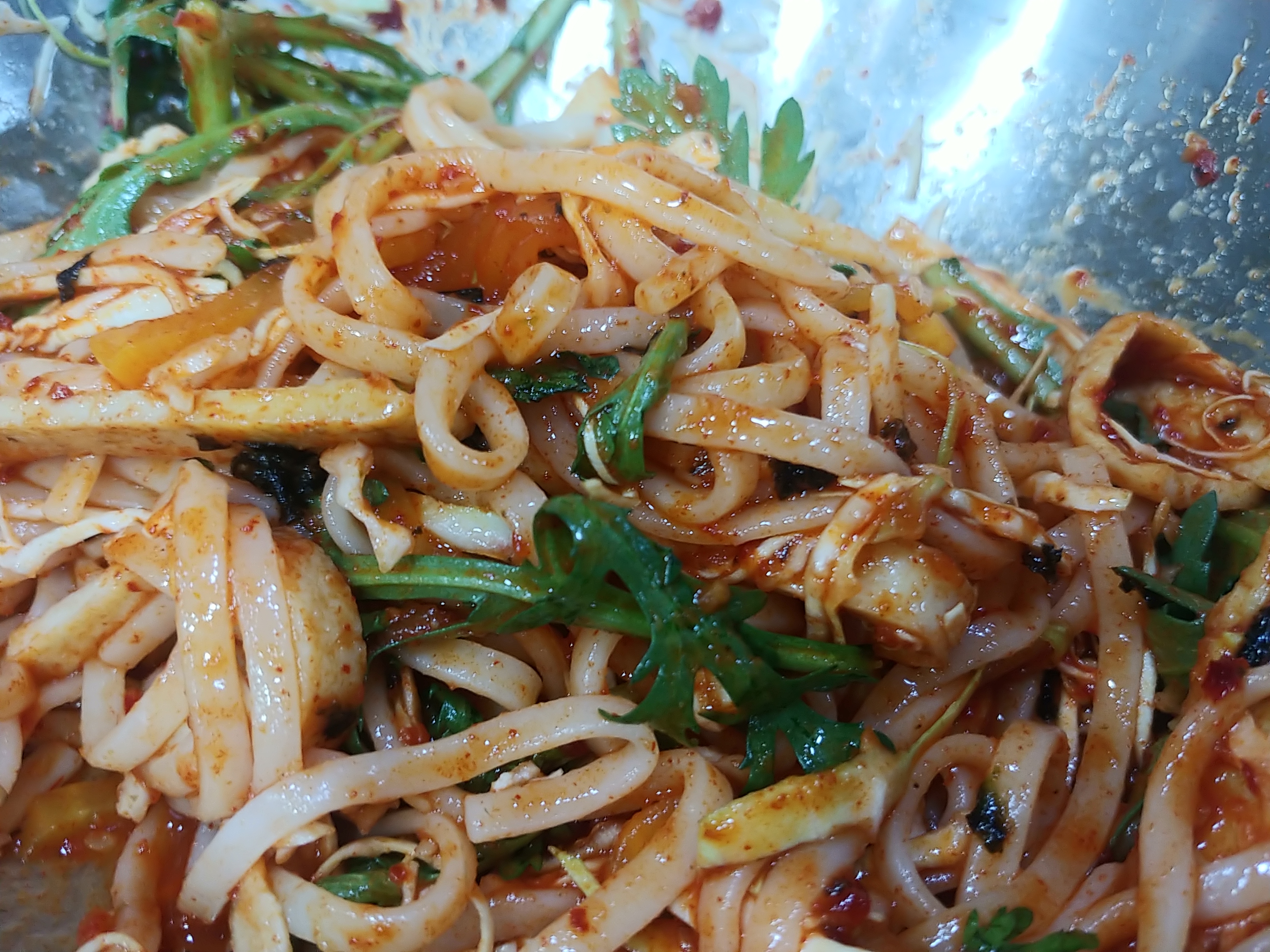 비빔우동 면인데 뭐랄까 윤기가 쫘르륵 흐른다는말이 정확할거같아요.
