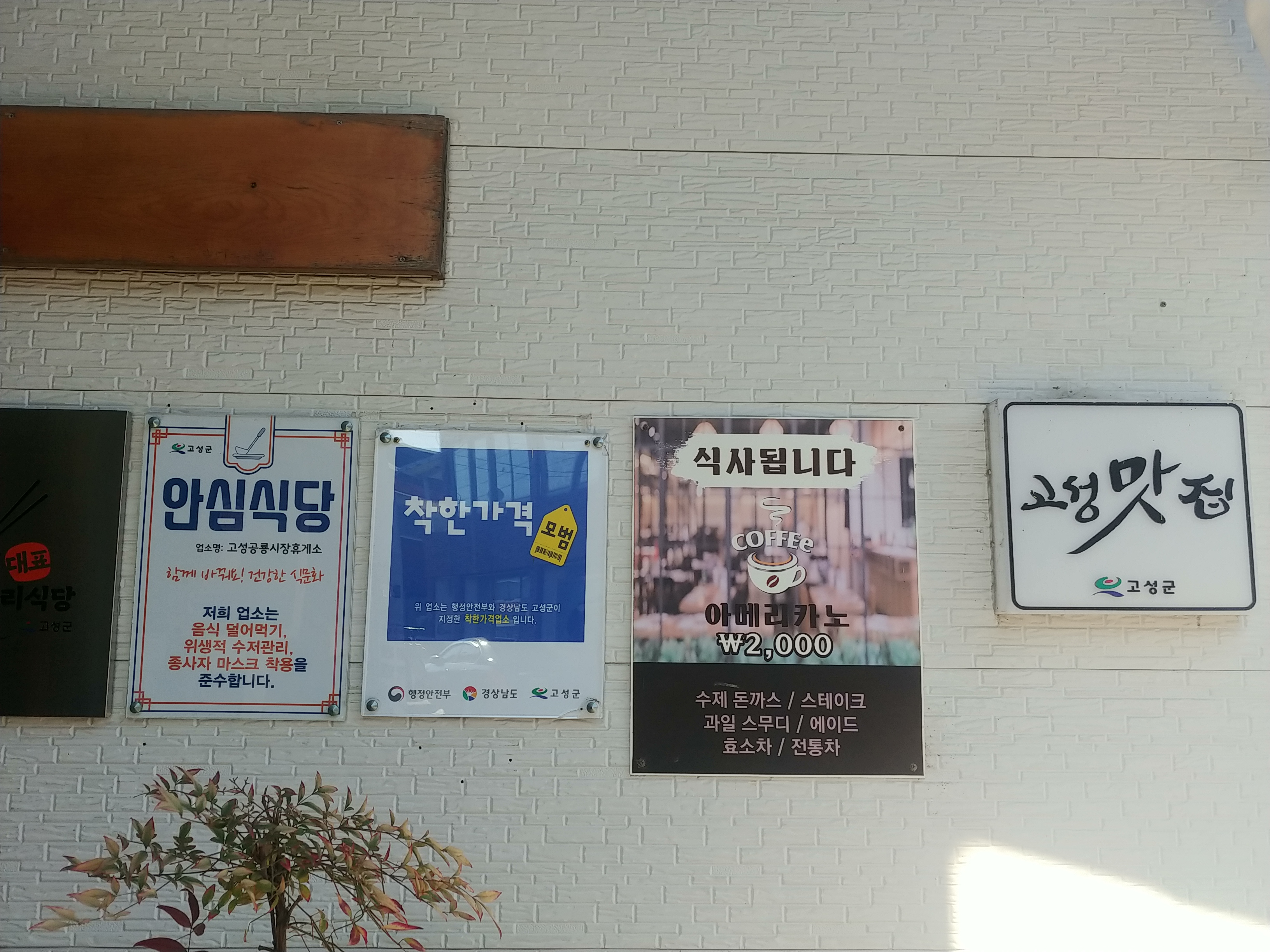 그외도 안심식당 착한가격가게 너무 좋은 마크와인증들이 가게 앞 벽에 가득 채워져있는것이 아 여기는 고성 맛집 베스트 맛집이구나 하는 생각이 딱 들게 만드렀어요.