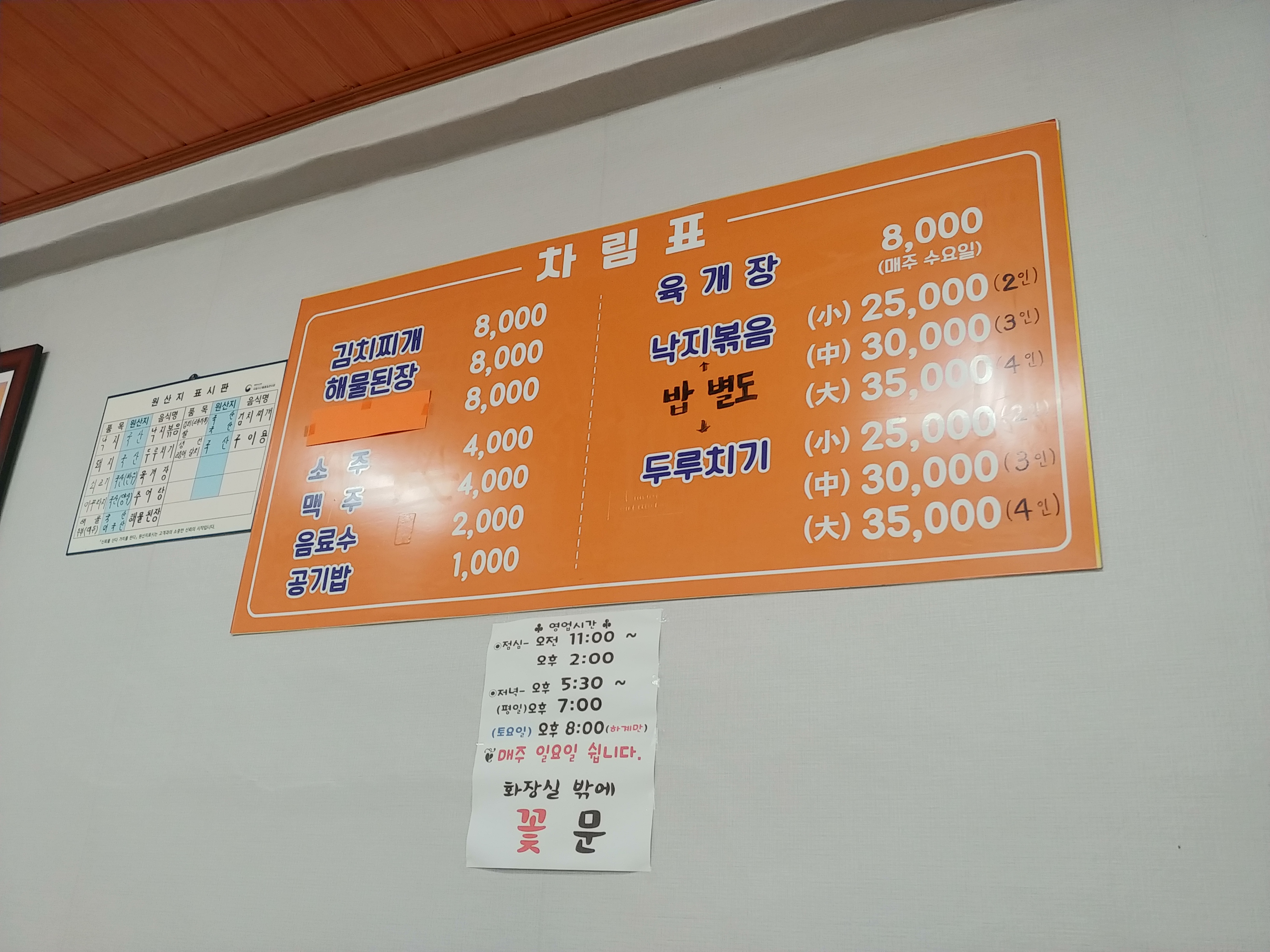 차림표 메뉴표를 보면 역시 가장 유명한 메인이 김치찌개 두루치기이다.