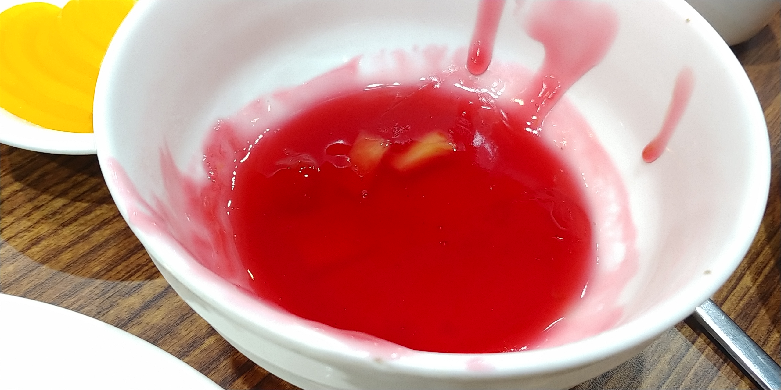 특이한것이 탕수육소스가 핑크빛이 도는 좀 특이한 색감을 가진 소스이다.