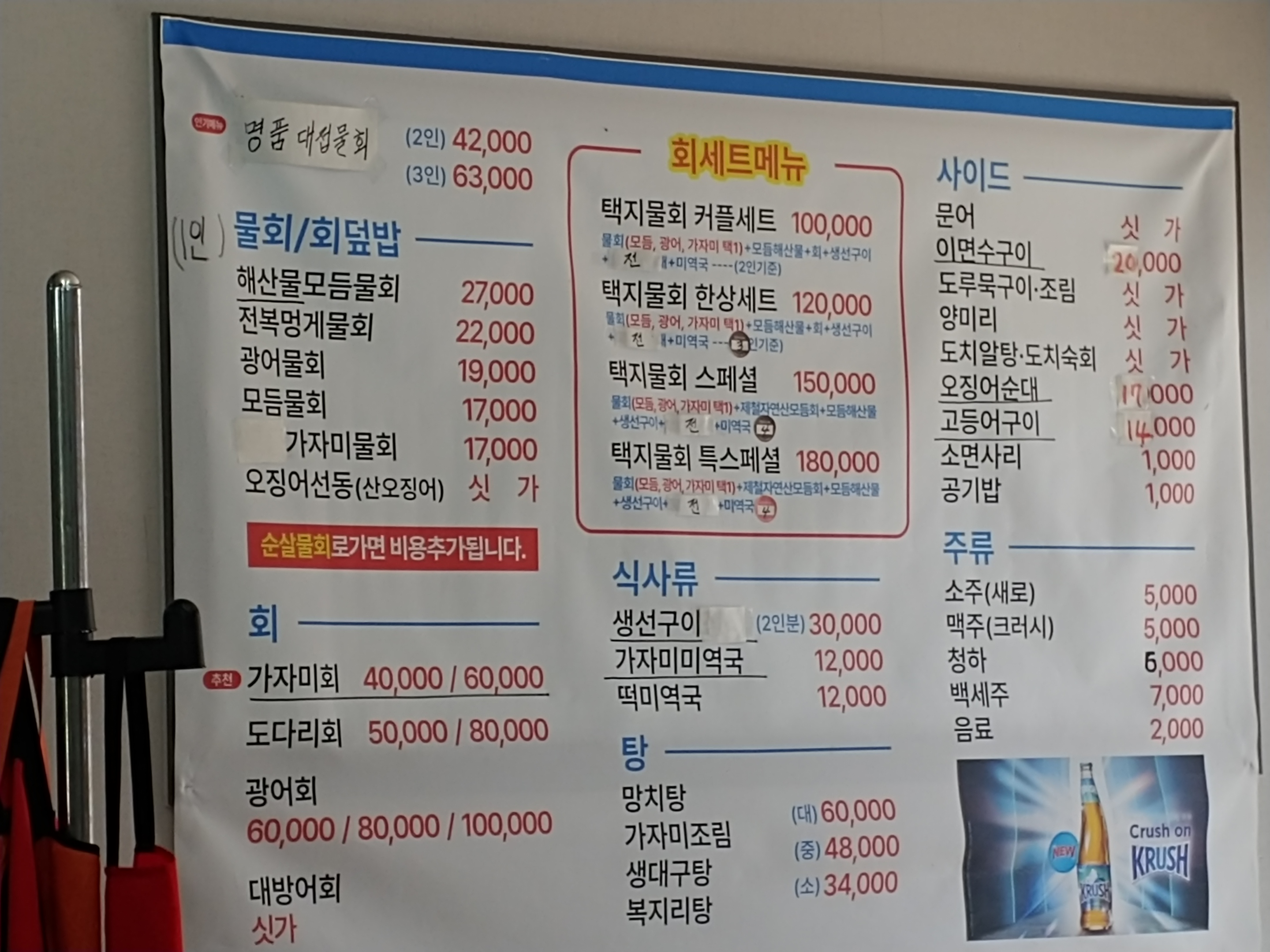 우리가족은 회는 별로 안땡겨서 물회를 먹기로 했다.