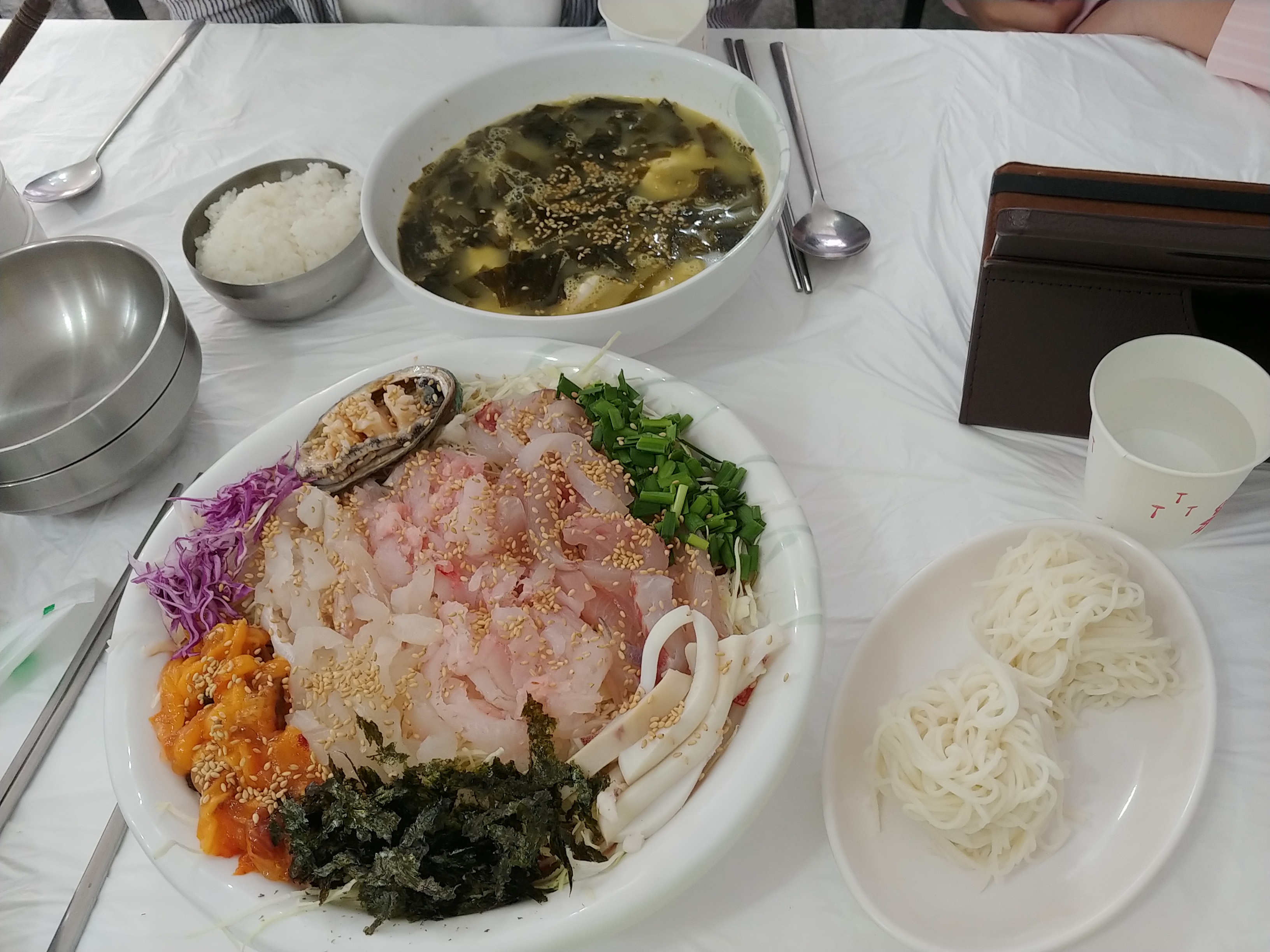 둘째는 회를 잘못먹어서 가자미역국 12000을 주문하고 공기밥하나 소면사리2개를 주문했는데