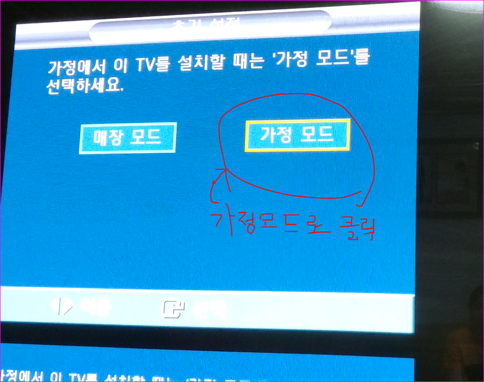 →2009년~12년은 메뉴 →시스템설정 → 초기설정(TV모드에서) →가정모드