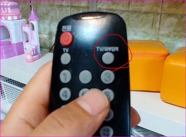 1. 리모컨 TV/외부입력 눌러서 티비창오게 합니다.