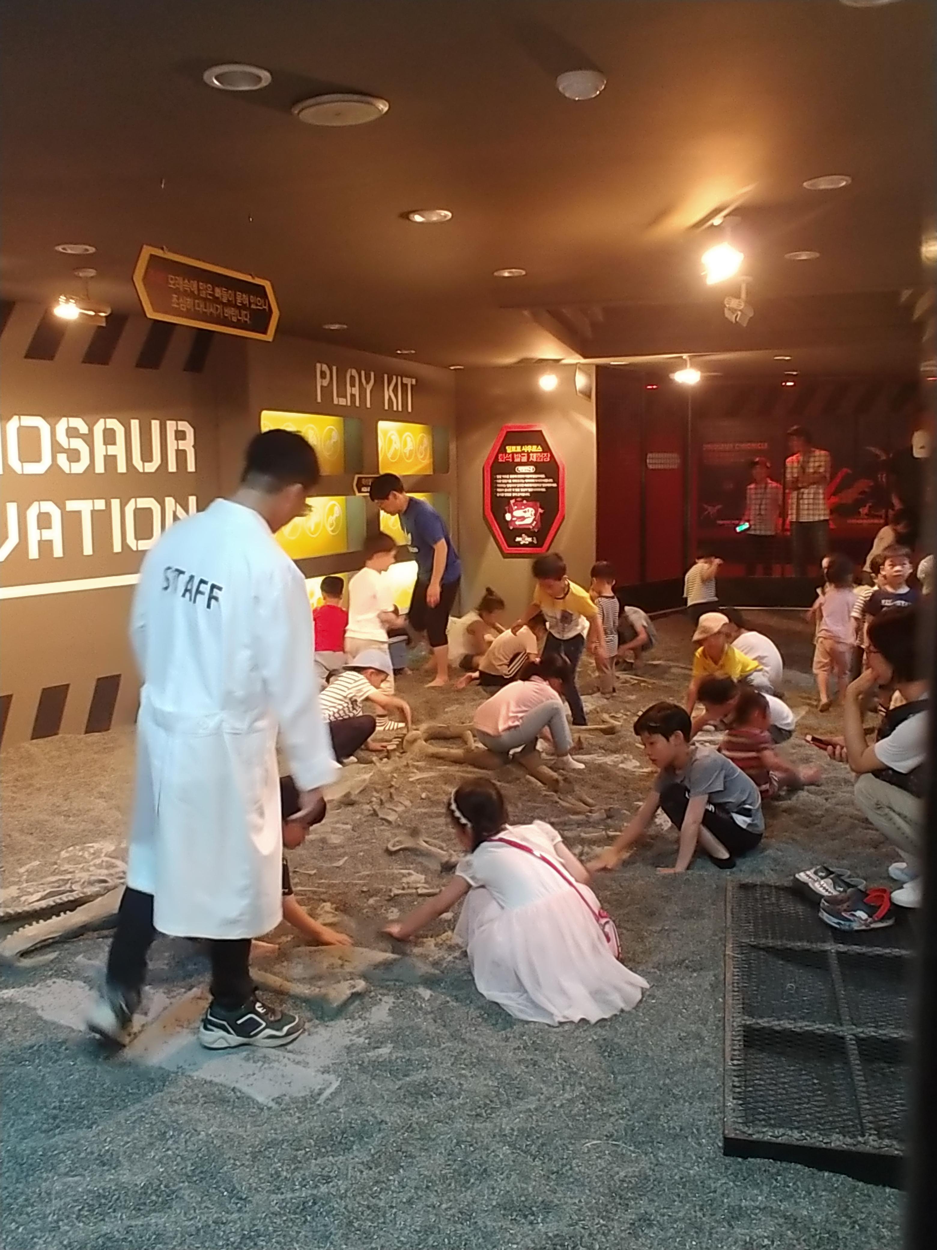 화석을 붓같은걸로 살살 쓸면서 공룡뼈와 화석을 찾고 탐험하는 체험관이에요.