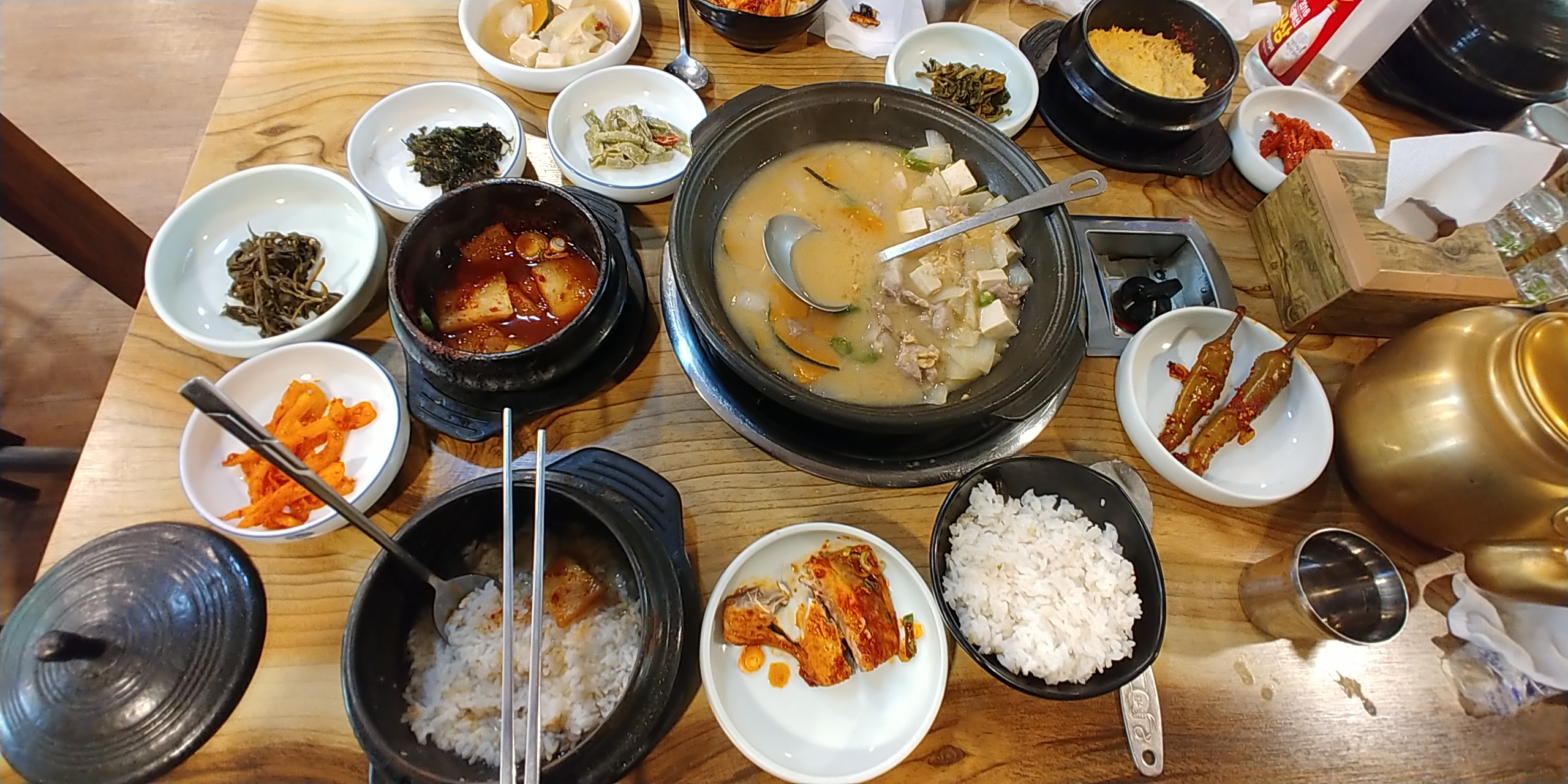 갖가지 밑반찬이 눈길을 끕니다.